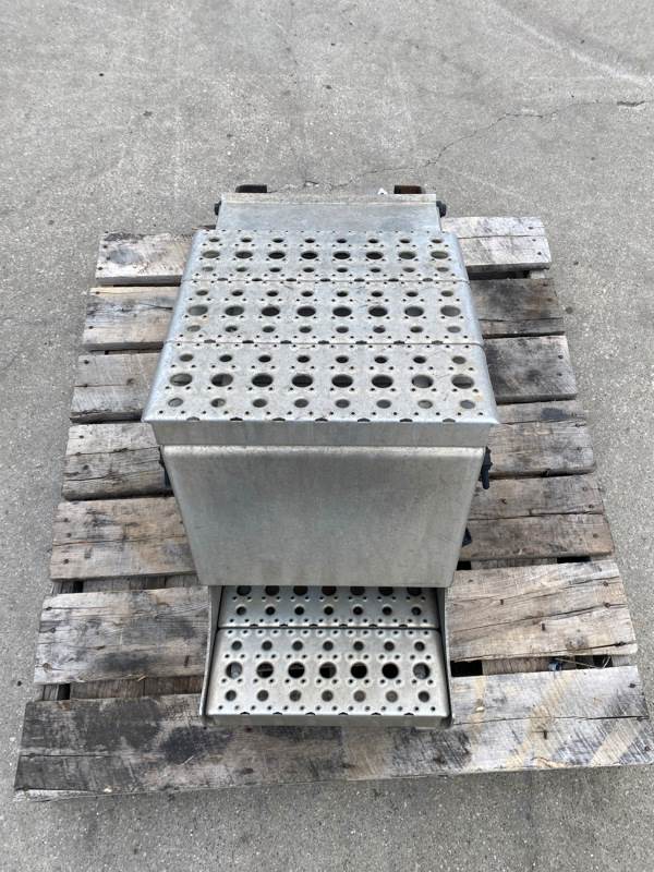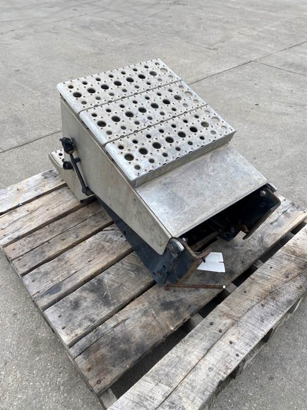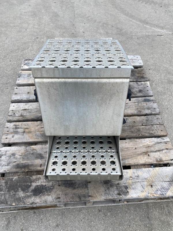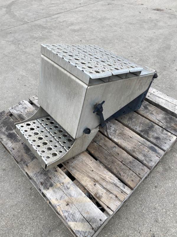Used Cascadia 126 Battery Box, Side: Driver, Tray Material: Steel, Battery Capacity: 3, Width: 14.75", Height: 19.75", Steps: Yes, Latch/Strap: Strap