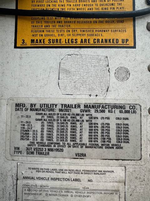 2021 UTILITY 53ft Reefer Trailer - 11,400 Hrs, Thermo King S-600 Unit, Air Ride, Swing Doors, Side Skirts, Tire Inflation System