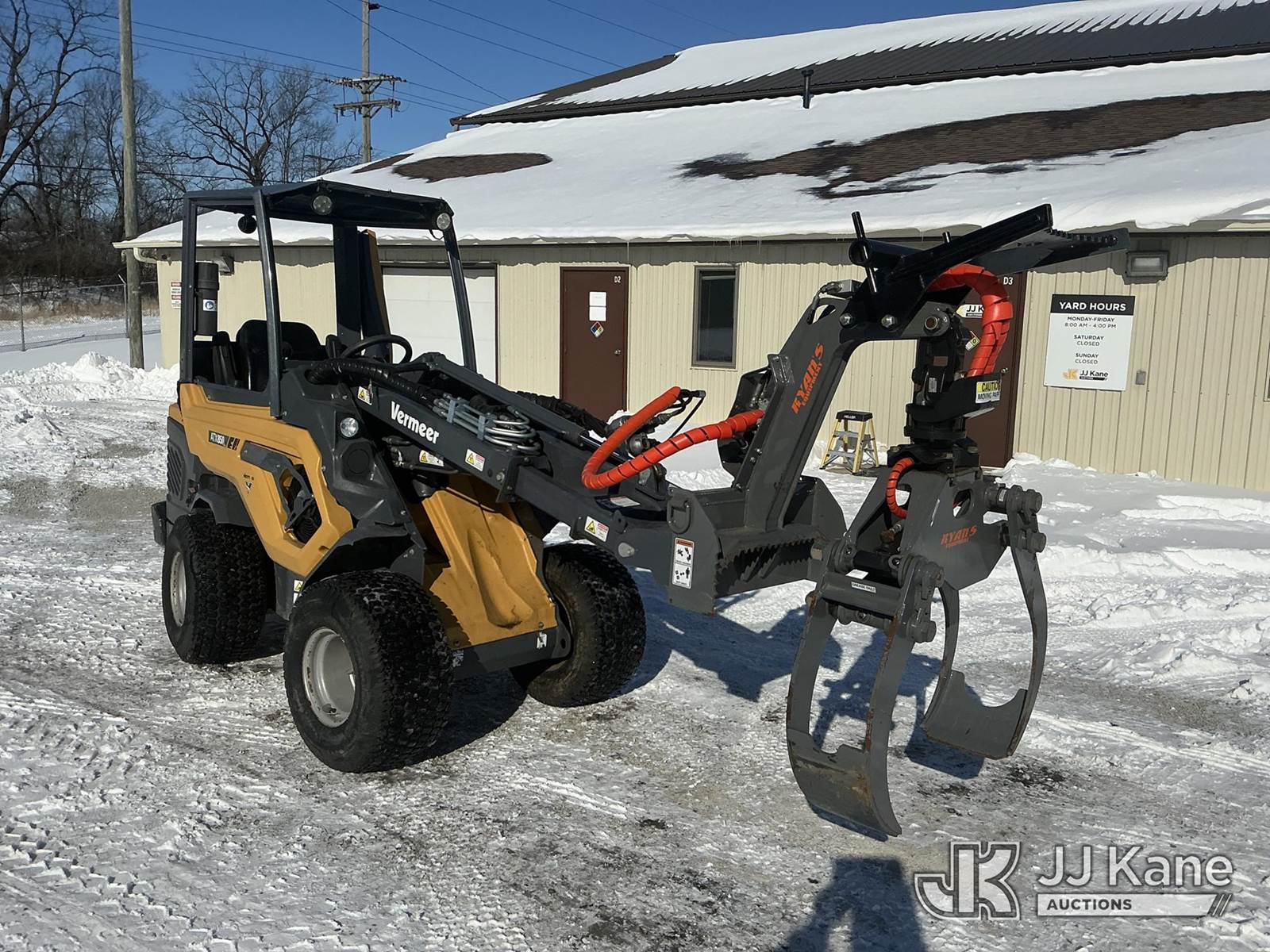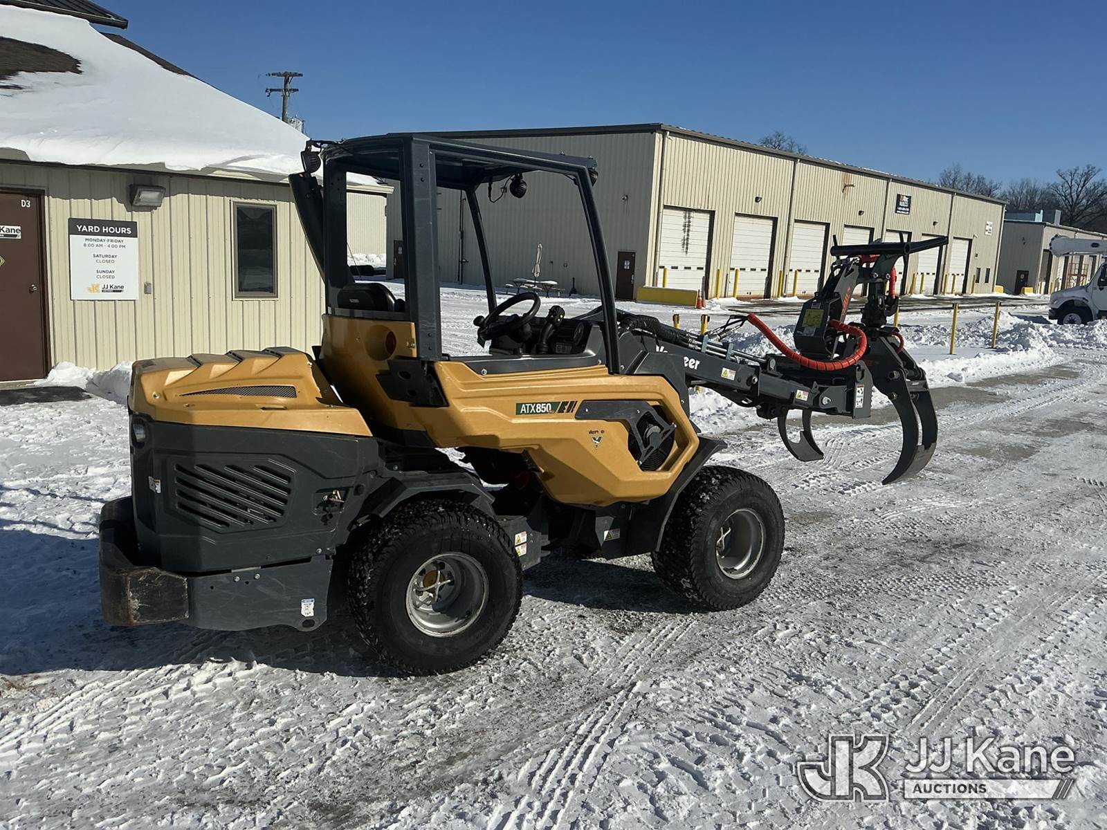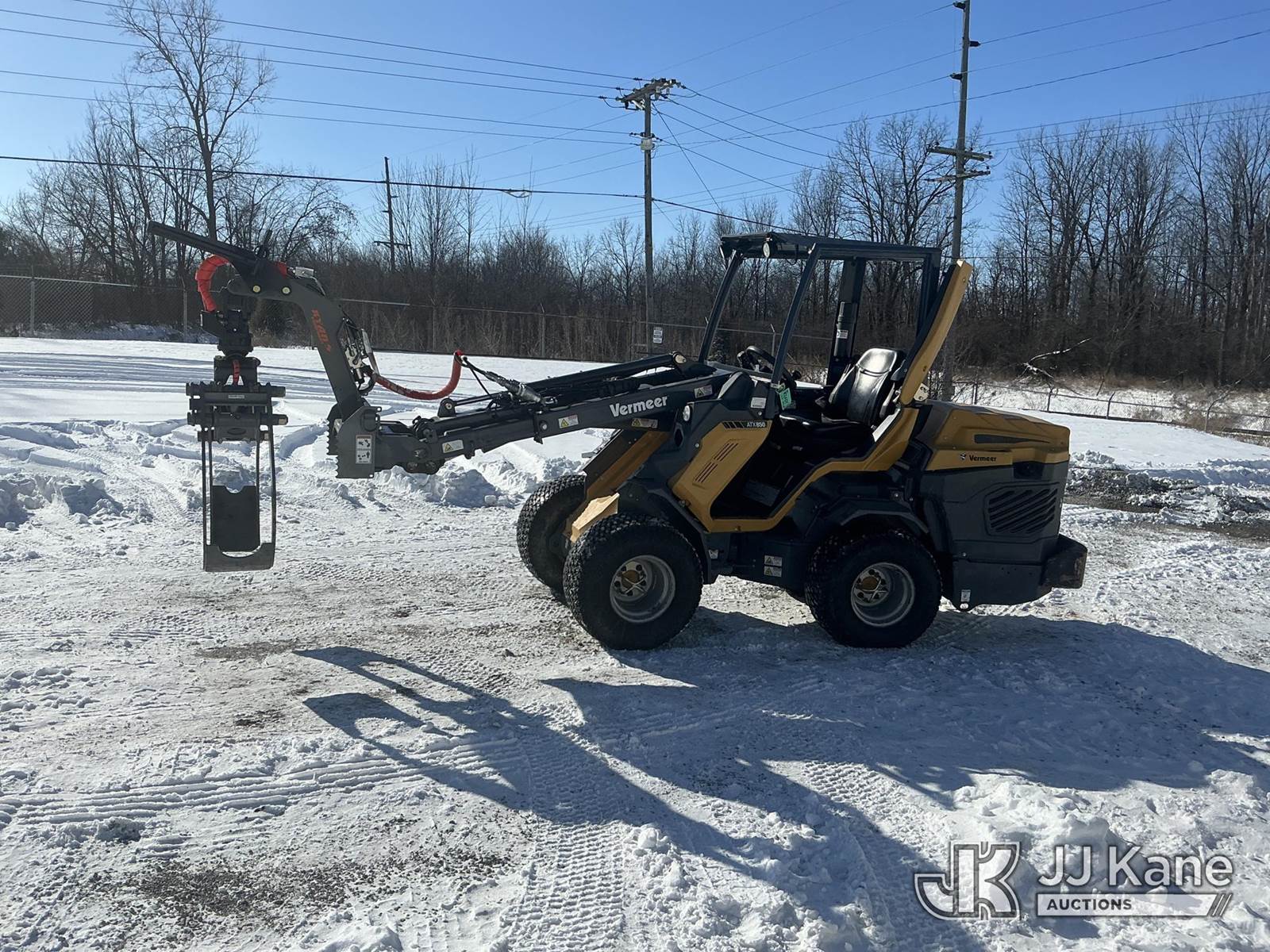 2022 Vermeer ATX 850 Articulating Wheel Loader, s/n 1M1KALD2HNV355485, Kohler diesel, Hydrostatic, with Ryan's Equipment grapple attachment ser. # 252-583, aux. hyd., turf tires & ROPS, (Runs, Moves & Operates) (Reads 500 hours) NOTE: This unit is being sold AS IS/WHERE IS via Timed Auction and is located in Fort Wayne, IN. For more information & removal arrangements please contact Office Staff @ (260) 450-9822. Load out by appointment only, Buyer/Hauler must present copy of paid invoice upon arrival. Purchaser acknowledges ALL lots must be removed within (10) business days of Auction, or a storage fee may be incurred. For load out and pick up information, please reference the hauler sheet sent out after purchase. (Buyer is responsible for removal. Assistance by consignor or JJ Kane Auctions is not assured.)