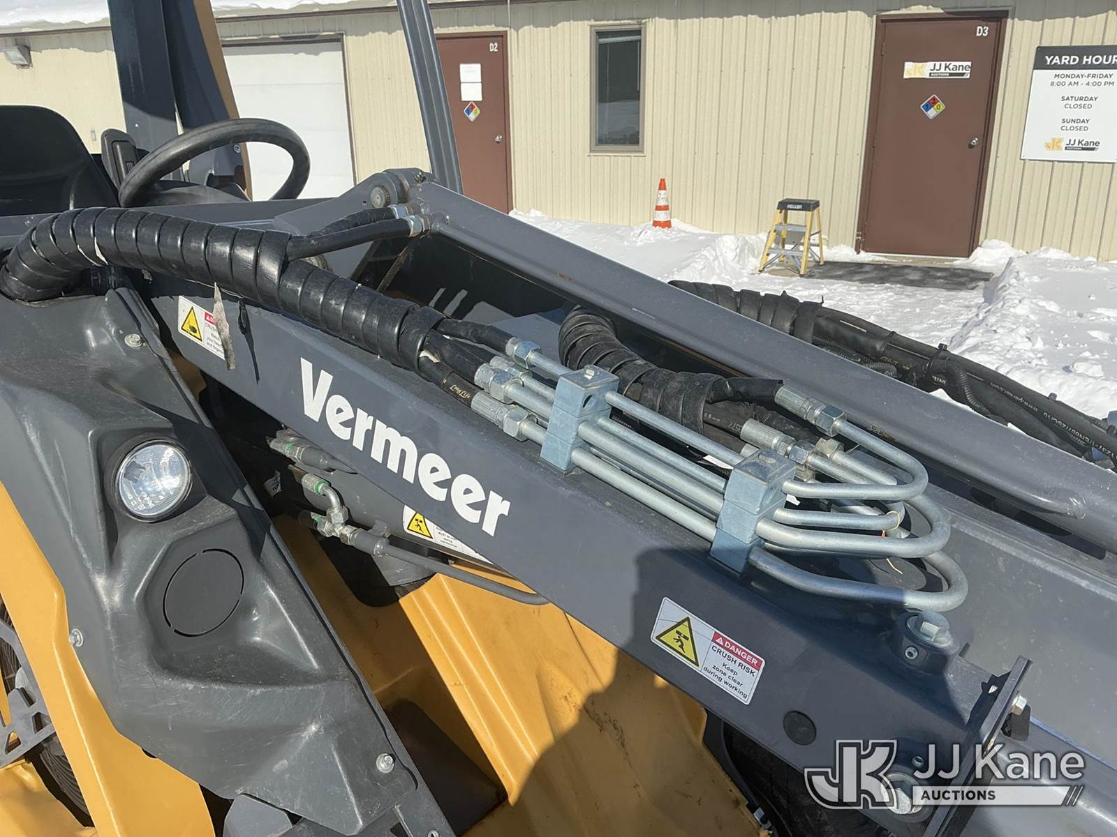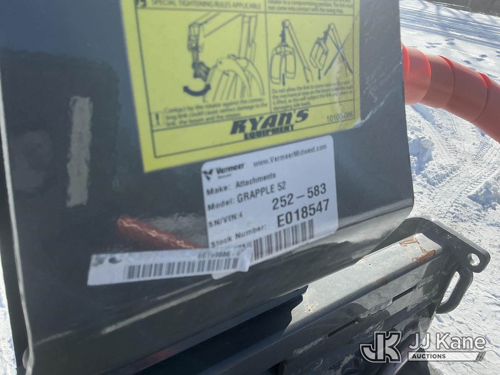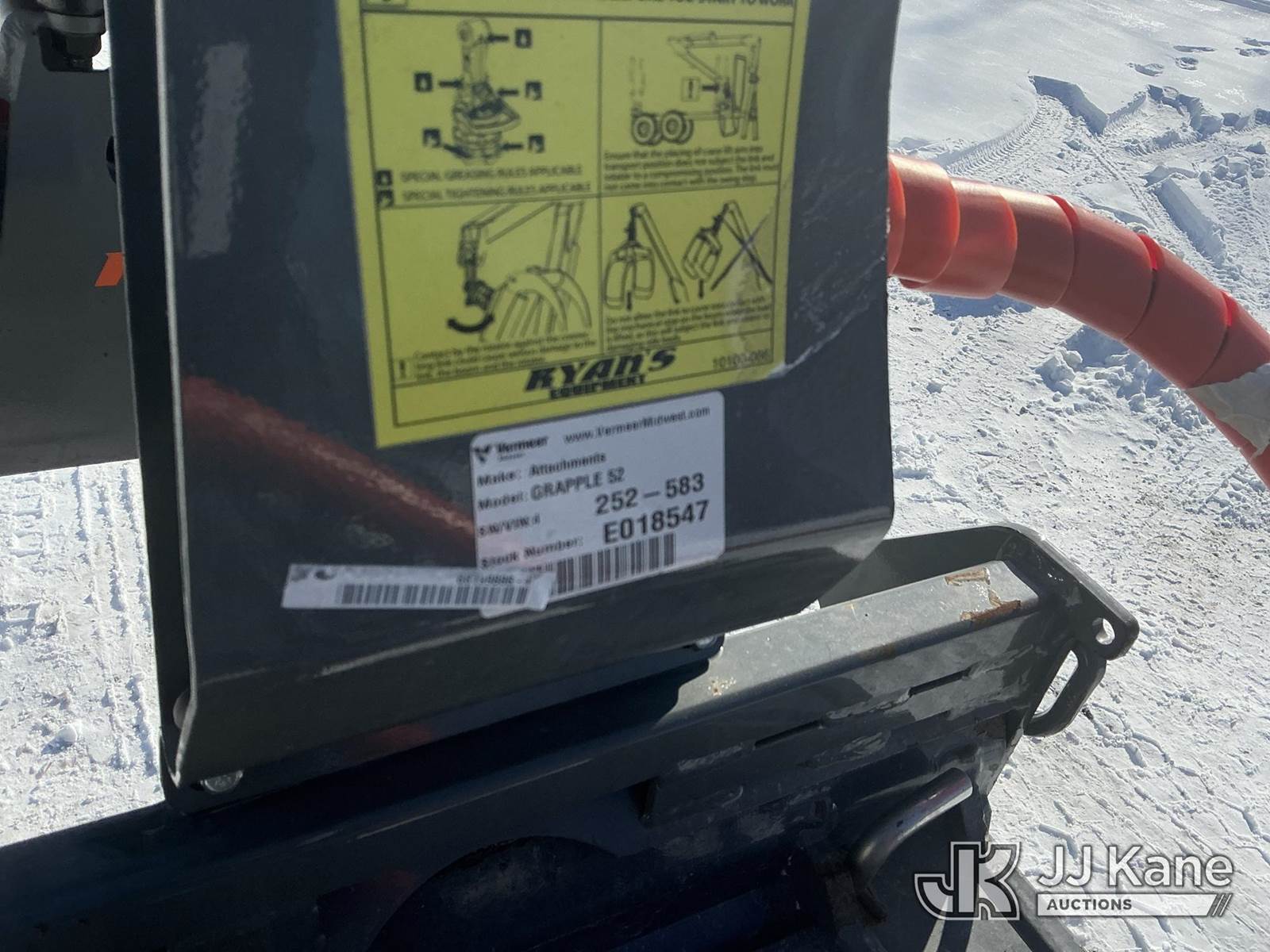 2022 Vermeer ATX 850 Articulating Wheel Loader, s/n 1M1KALD2HNV355485, Kohler diesel, Hydrostatic, with Ryan's Equipment grapple attachment ser. # 252-583, aux. hyd., turf tires & ROPS, (Runs, Moves & Operates) (Reads 500 hours) NOTE: This unit is being sold AS IS/WHERE IS via Timed Auction and is located in Fort Wayne, IN. For more information & removal arrangements please contact Office Staff @ (260) 450-9822. Load out by appointment only, Buyer/Hauler must present copy of paid invoice upon arrival. Purchaser acknowledges ALL lots must be removed within (10) business days of Auction, or a storage fee may be incurred. For load out and pick up information, please reference the hauler sheet sent out after purchase. (Buyer is responsible for removal. Assistance by consignor or JJ Kane Auctions is not assured.)