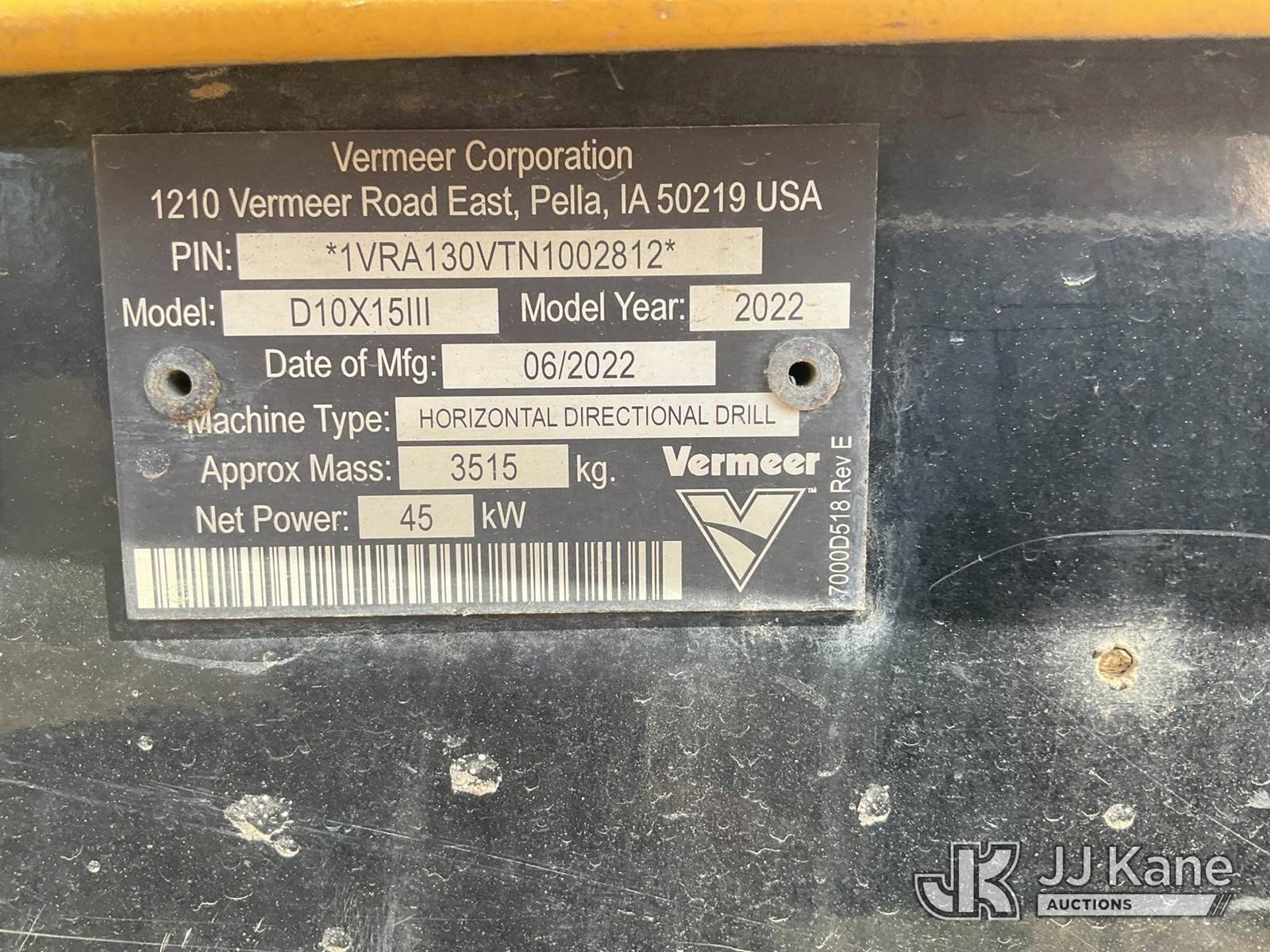 2022 Vermeer D10x15 Series III Horizontal Boring Machine, s/n 1VRA130VTN1002812, Deutz diesel, Hydrostatic, with rubber tracks, hyd hold downs, riding console, drill steel & 2022 B-B Tagalong Support Trailer 4L5SC2625NF059872 w/ mud mix system, Selling With Item 1587122.(Equipment and trailer price will be split out on invoice to reflect 80/20, equipment to trailer price ratio for tax purposes.) (Runs, Moves) (Reads 975 hours) NOTE: This unit is being sold AS IS/WHERE IS via Timed Auction and is located in South Beloit, IL. Inspection & preview days for this unit are the 2 business days prior to the first day of items closing for this auction, item is located at 14354 Dearborn Ave South Beloit, IL and hours of operations are 8a-4p. For pre-sale questions, please contact Derek Eklund at (608) 904-0618 or (derek.eklund@jjkane.com). (Buyer is responsible for removal. Assistance by consignor or JJ Kane Auctions is not assured.)