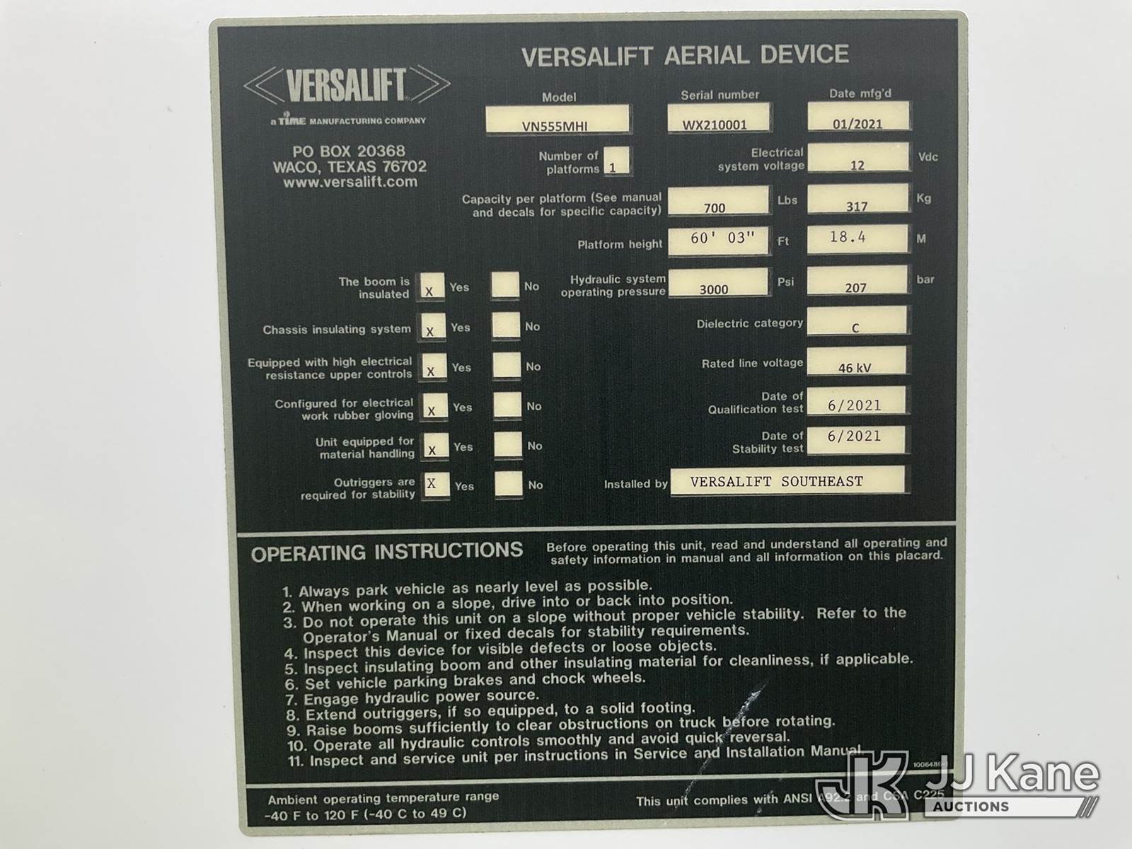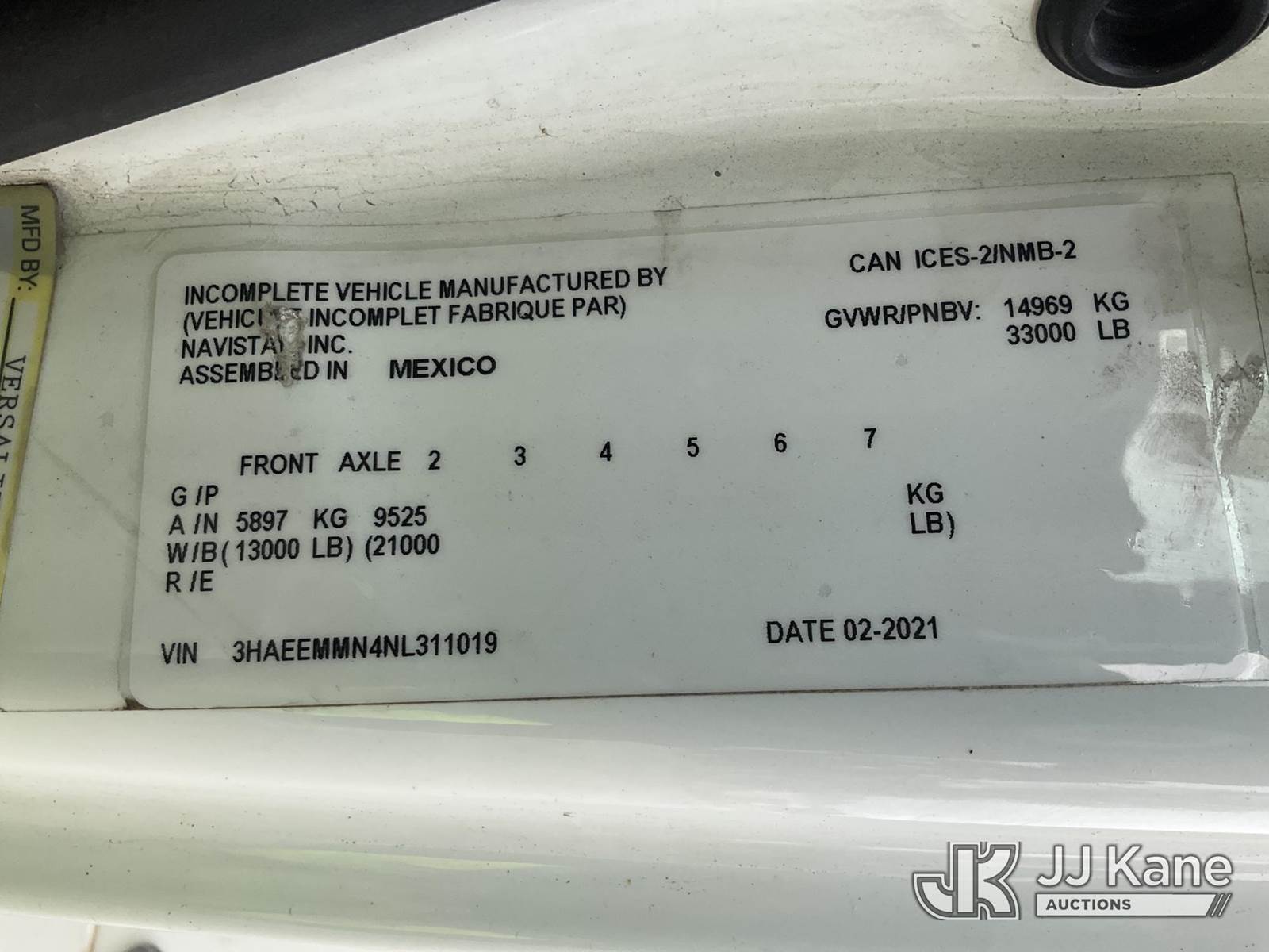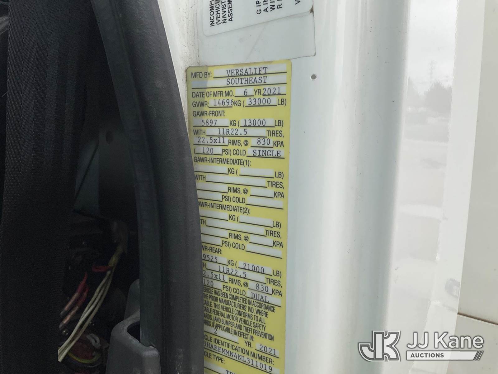 Versalift VN555MHI, 65 ft, Articulating Material Handling Bucket Truck s/n WX210001, with two man bucket, material handling jib, four hydraulic outriggers, center mounted on 2022 International HV507 4x4 Utility Truck, Cummins 6.7L Auto, diesel, A/C, (20,145 miles) (Runs, Moves, & Operates) (Reads 2,858 hours) This is a Titled Item NOTE: This unit is being sold AS IS/WHERE IS via Timed Auction and is located in Charlotte, MI. Inspection & preview days for this unit are the 2 business days prior to the first day of items closing for this auction, item is located at 750 Island Hwy Charlotte, MI 48813 and hours of operations are 8a-4p. For pre-sale questions, please contact Corey Cook at (517) 983-0796 or corey.cook@jjkane.com (Manuals provided in cab) (Buyer is responsible for removal. Assistance by consignor or JJ Kane Auctioneers is not assured.)
