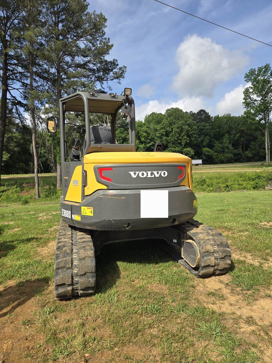 2022 Volvo ECR 88D Pro excavator, 887 hours, 58 HP engine, THUMB DRIVE, 20943 OptWt, open cab, rubber track, 90" blade, 24" bucket, transport length 20 ft 11", transport width 7 ft 7", transport height 8 ft 11", dredging depth 13 ft 6", max horizontal reach 22 ft 10.