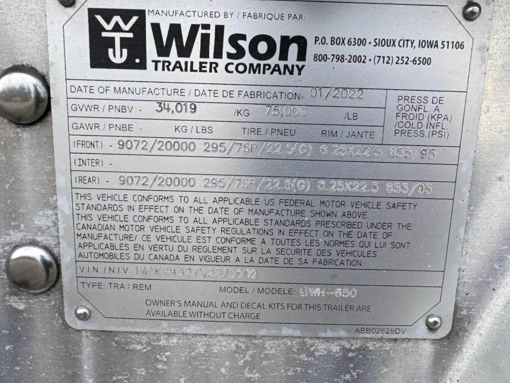 2022 WILSON DWH-650 Hopper / Grain Trailer