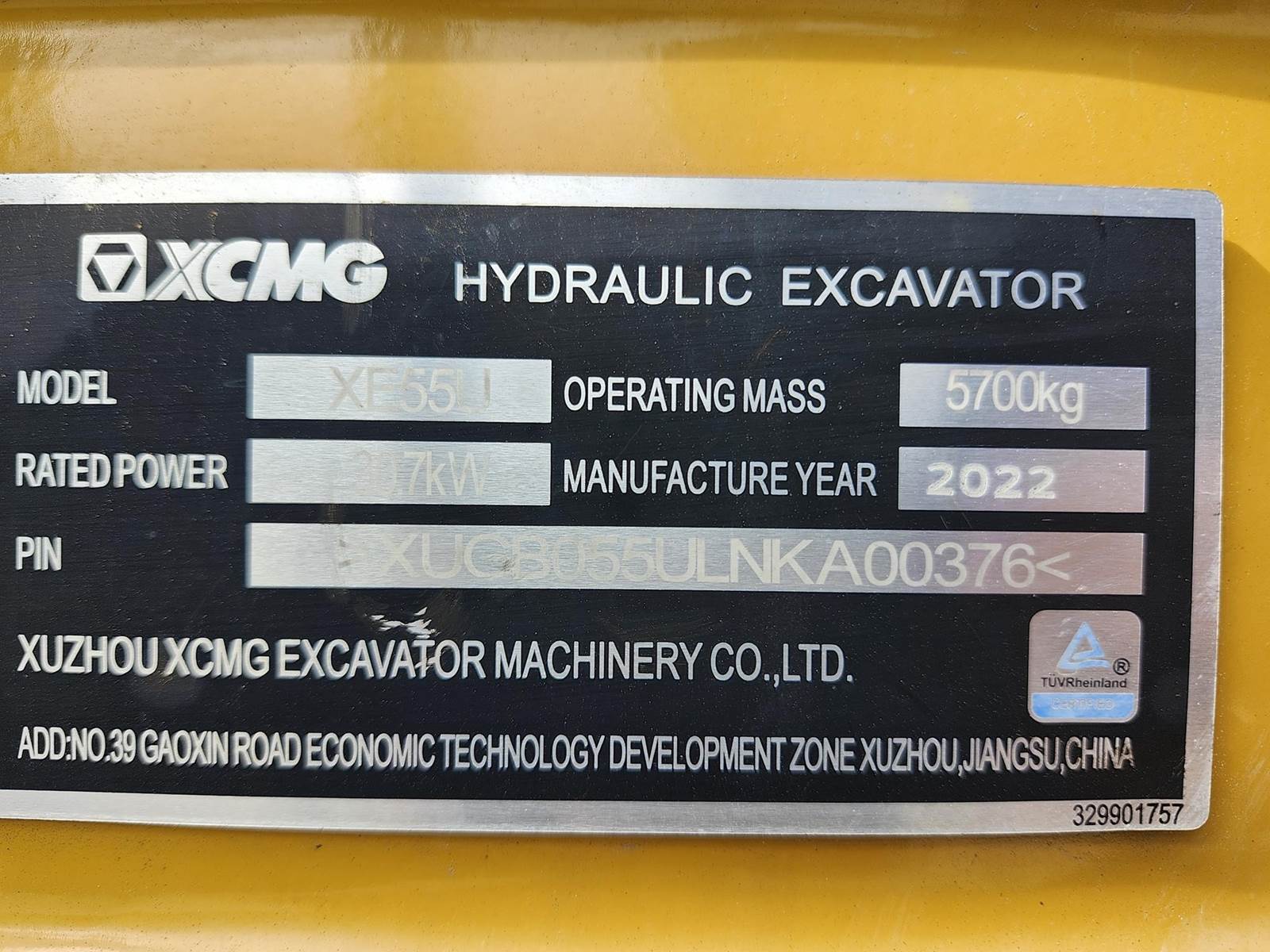 2021 Xcmg XE55U Mini Excavator