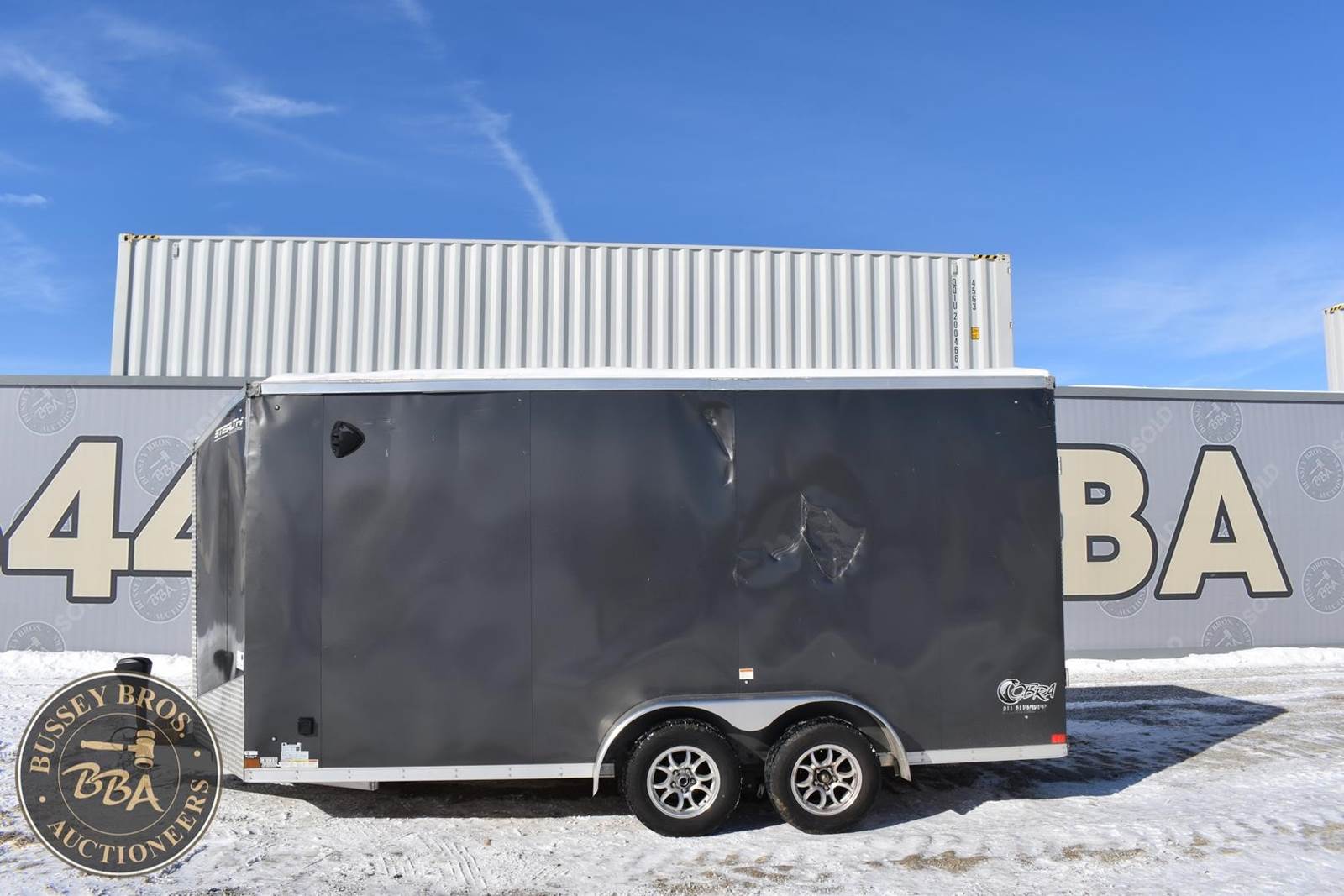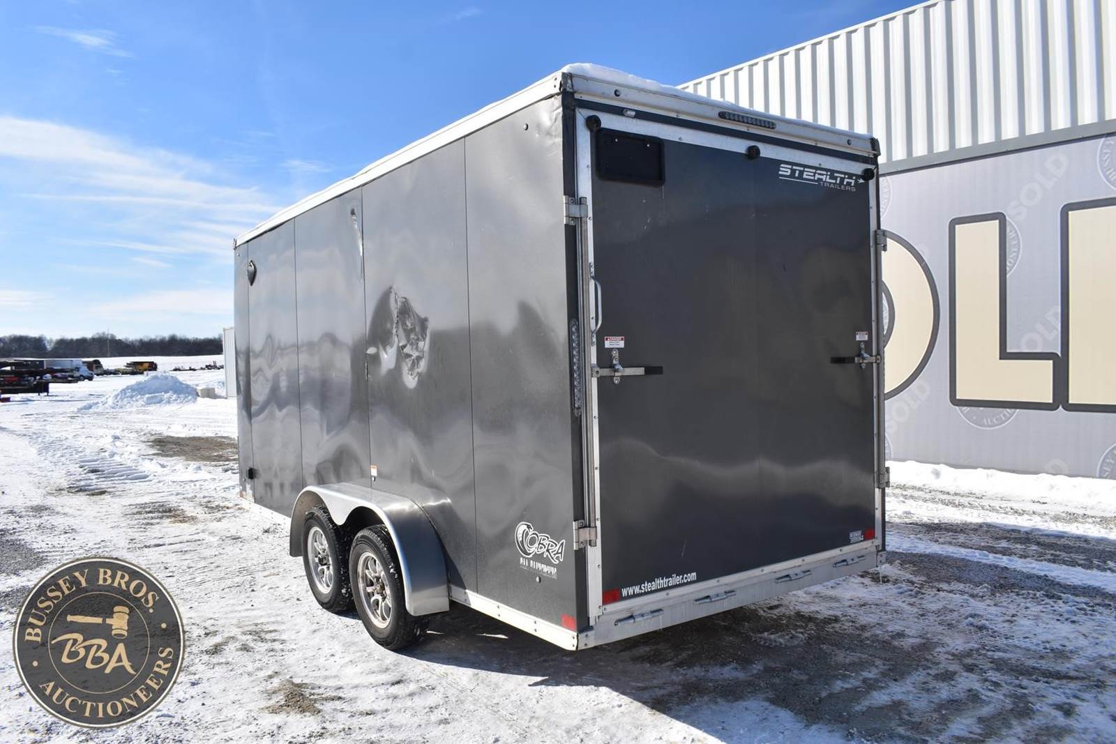 2023 Stealth Enclosed trailer, 16 Ft, tandem axle, rear ramp style door, side door, electric jack, **Trailer is damaged on drivers side.** SN#52LBE1621PE095930