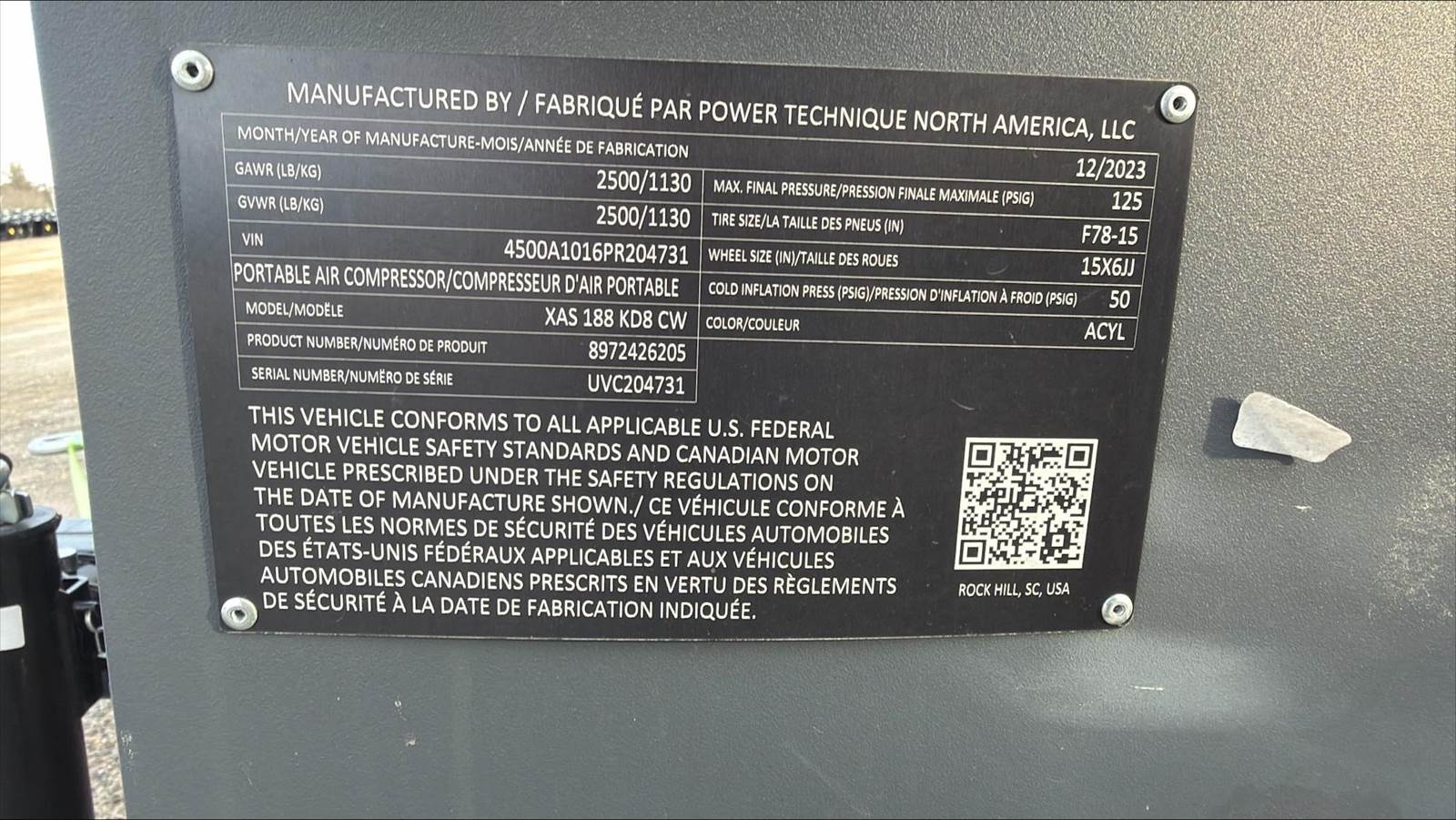 2023 Atlas Copco XAS188KD Air Compressor