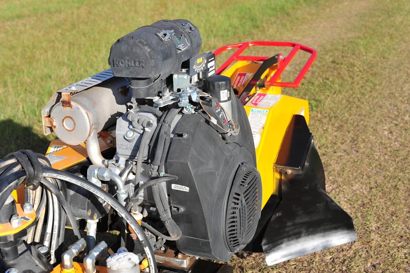 38 HP Kohler ECH-980 EFI gas engine, 15″ grinding wheel, 7″ rubber tracks, ~1,500 lb operating weight.