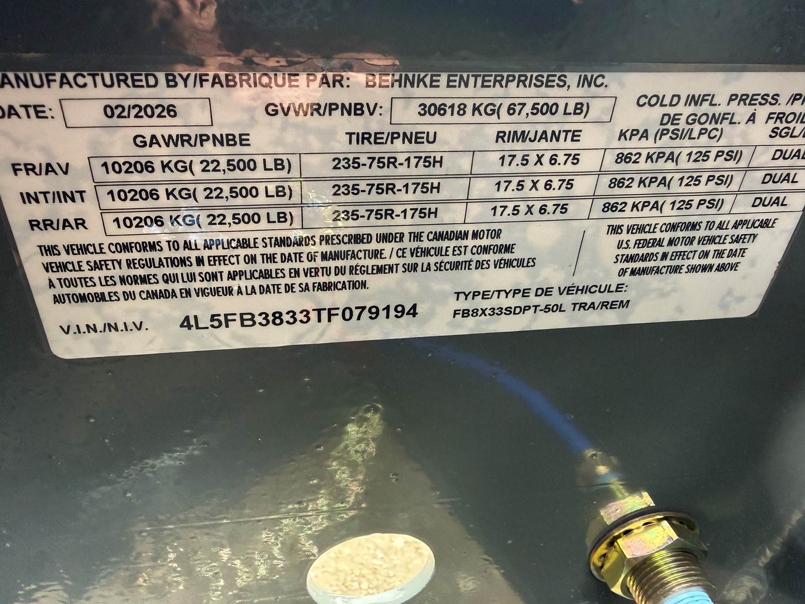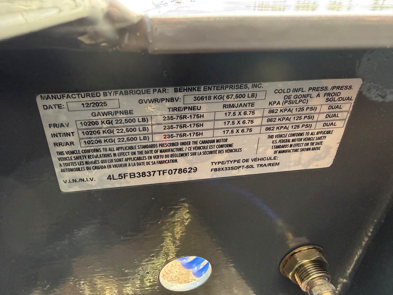 $63,064 - 2025 Behnke 8X33SDPT-50L (74893) - price includes FET