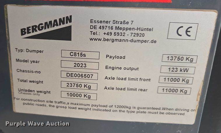 2023 Bergmann C815s articulated haul truck