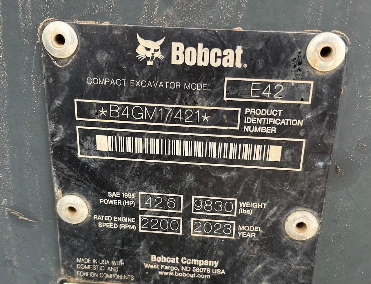 2023 Bobcat E42R2 Mini Excavator