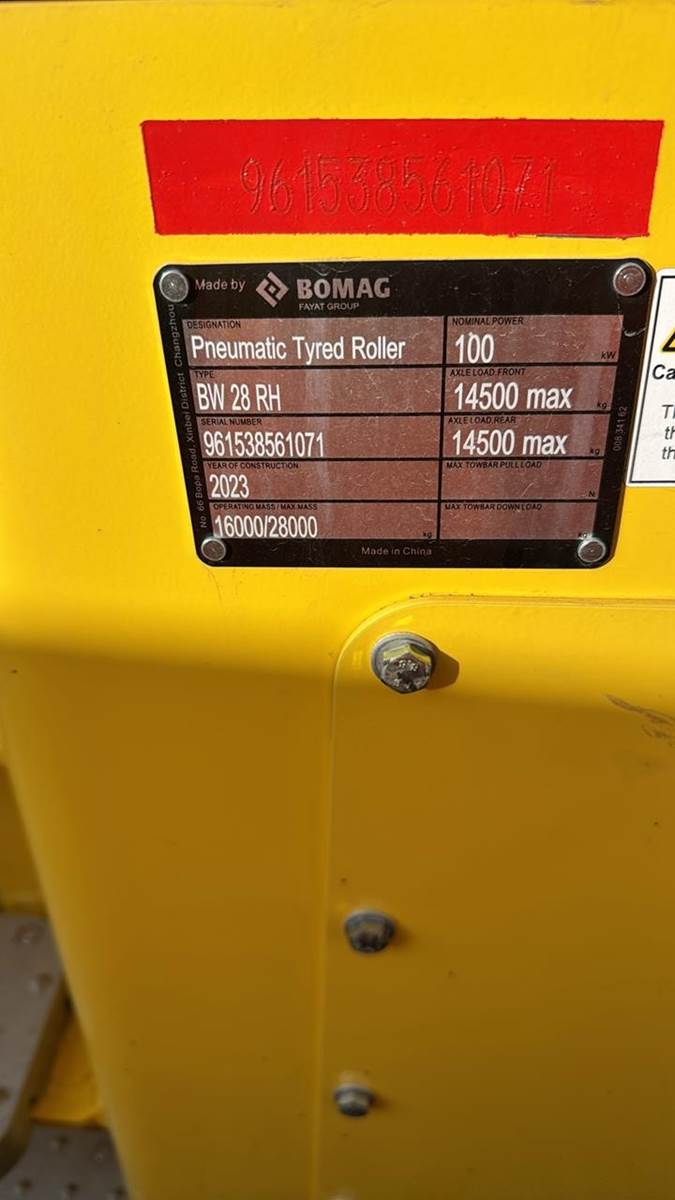 BOMAG BW28RH PNEUMATIC ROLLER, ALL STANDARD EQUIPMENT, W/ THE FOLLOWING OPTIONS:, STAGE V/TIER4F, TEMPERATURE GAUGE, WATER TIGHT FRA, COC...