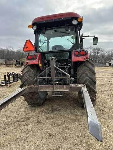 This MFWD tractor is equipped with a standard cab, power steering, 12x12 transmission, 3-point hitch, and rear PTO, supporting a wide range of implement applications.