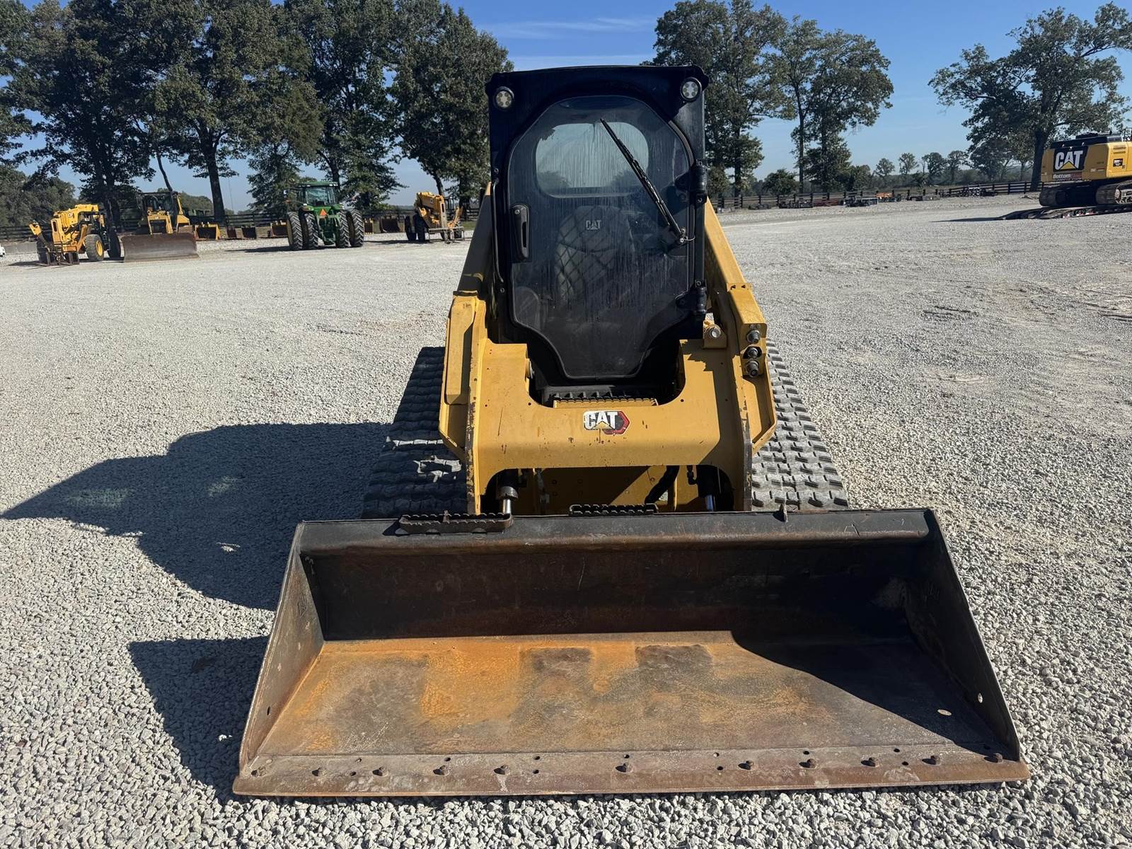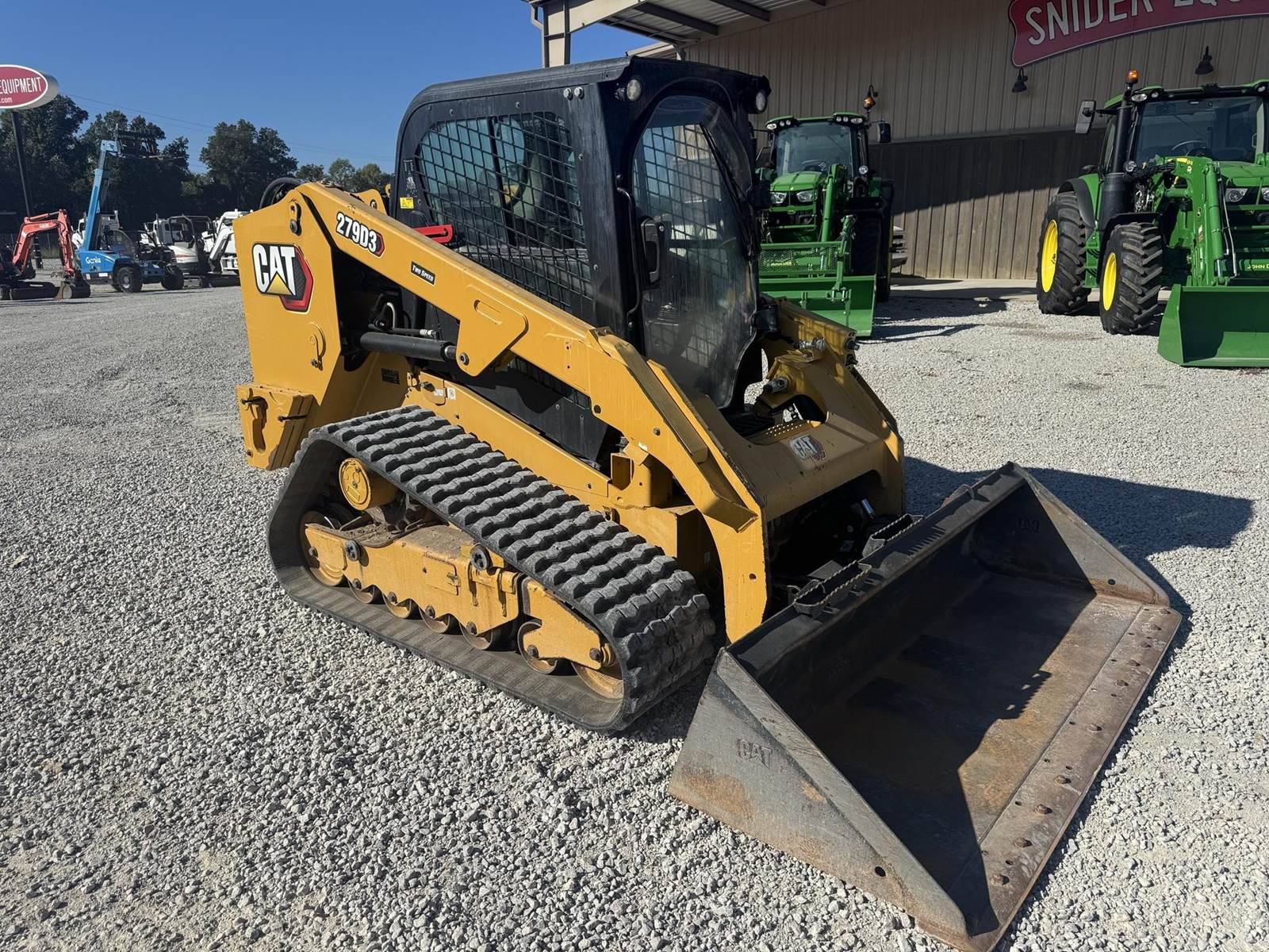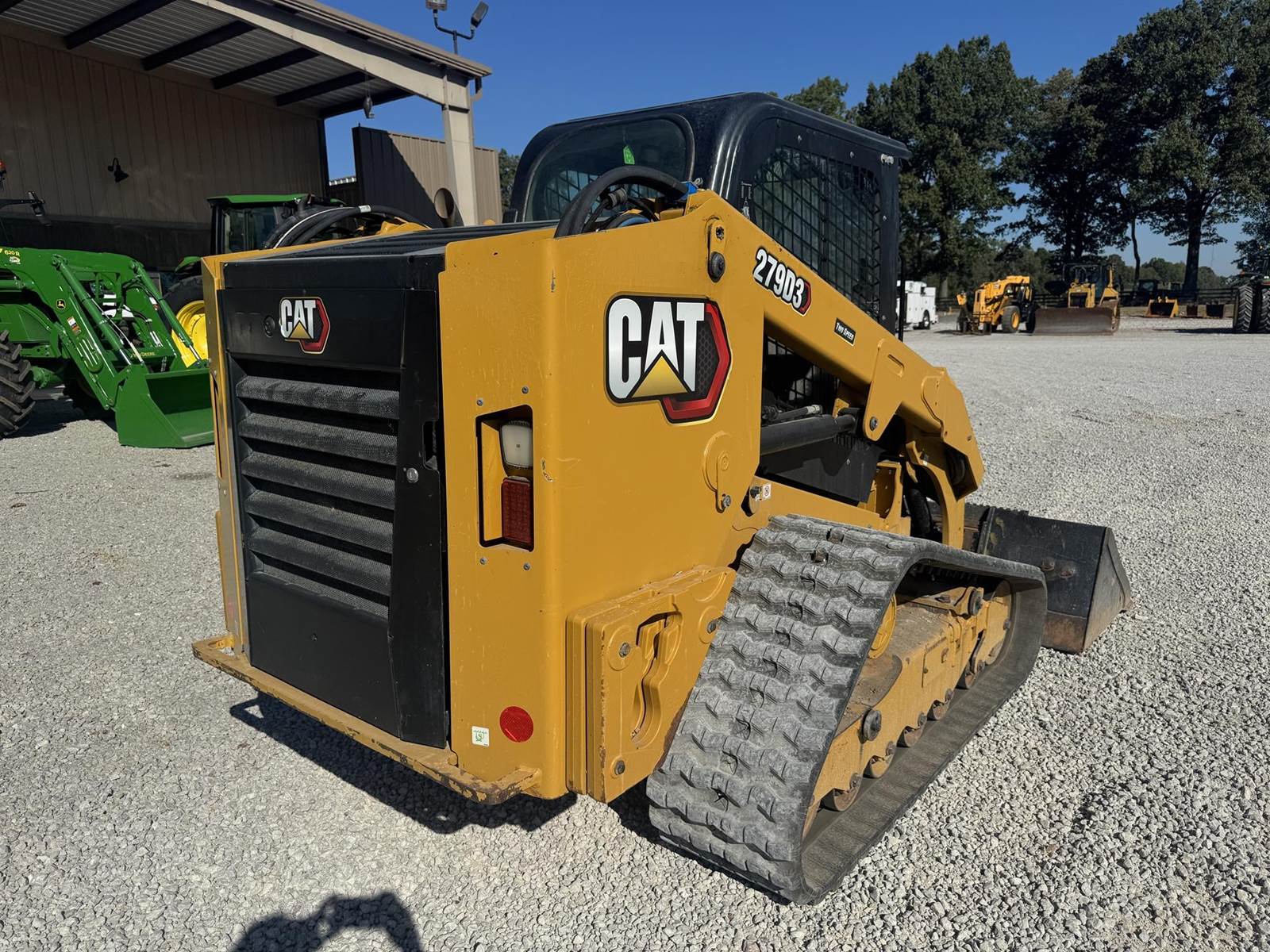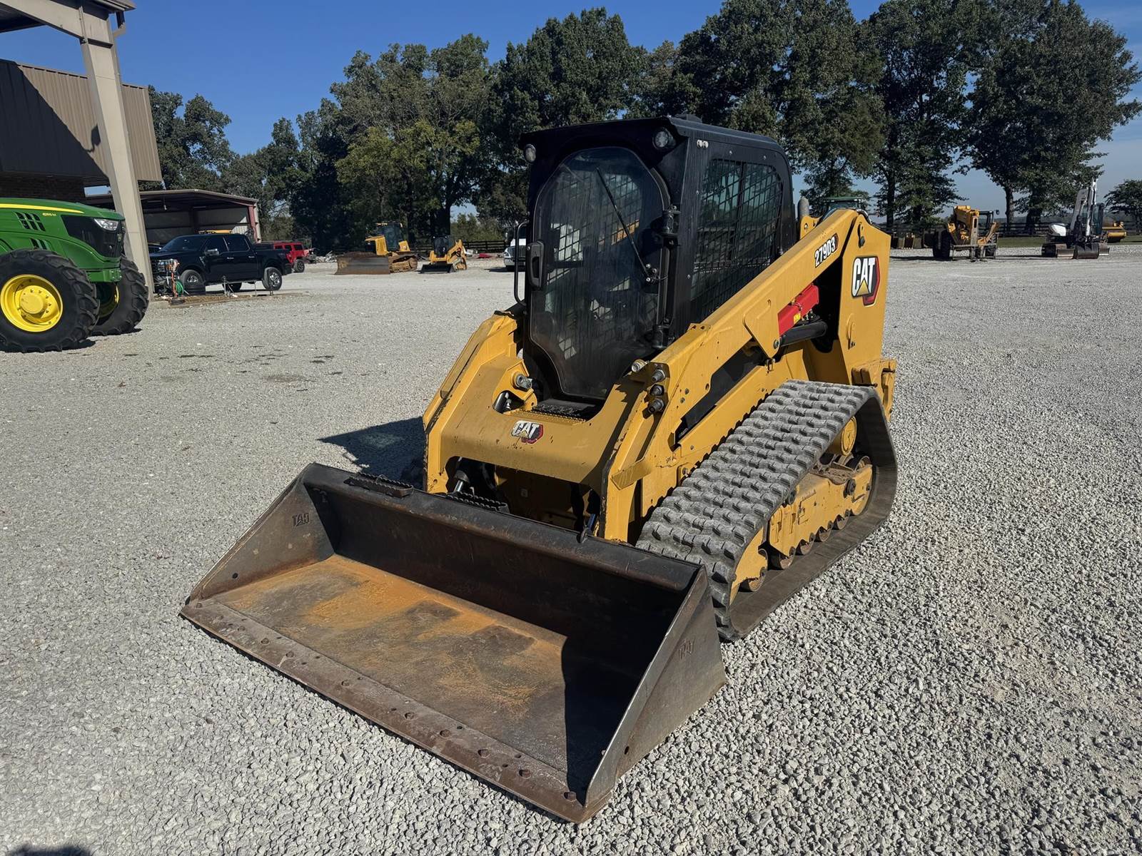 2023 CAT 279D3 WITH 2,777 HOURS!! Track Just replaced, No DEF Fluid required, 2-spd, counterweights, 86 inch bucket, joystick controls, Enclosed cab, A/C, radio, LED Lighting, back up camera, No active diagnostic trouble codes! ALSO includes standard flow grapple!!
