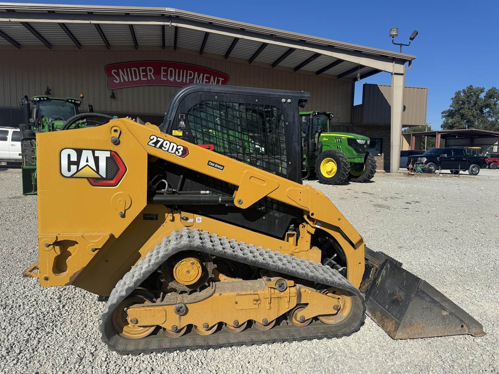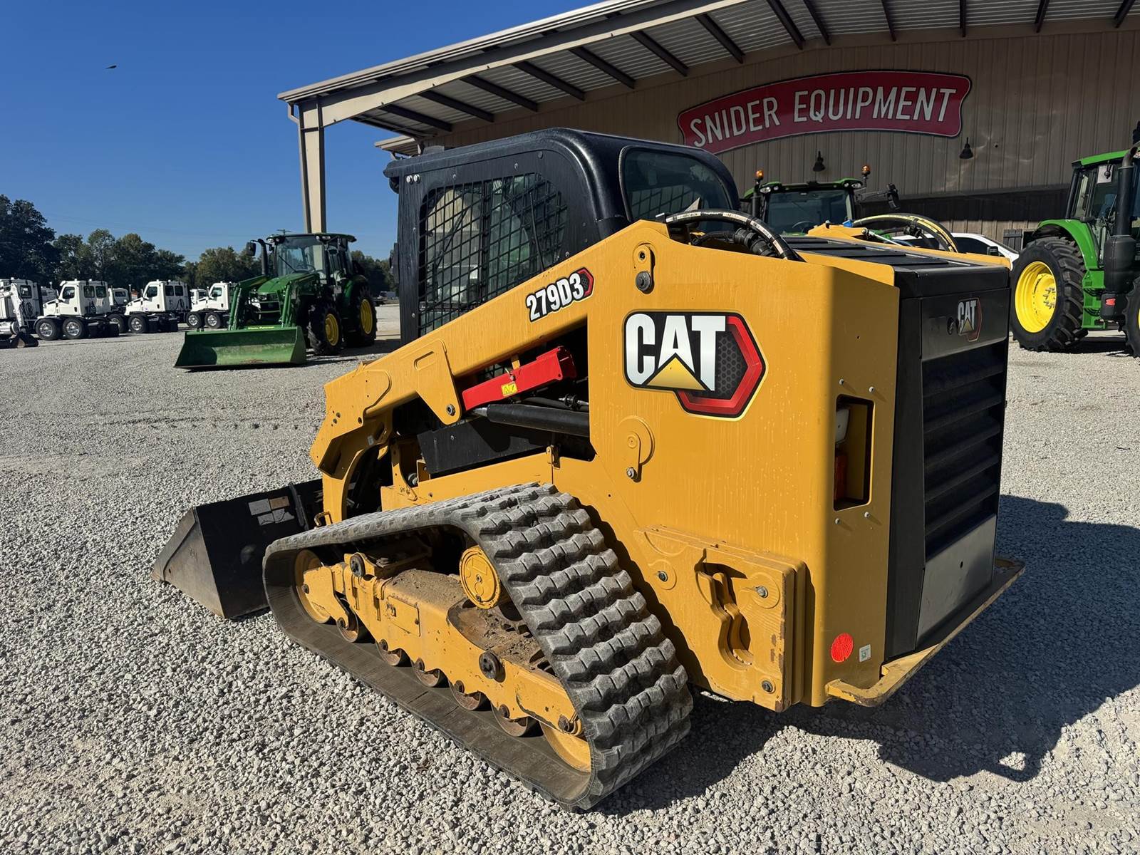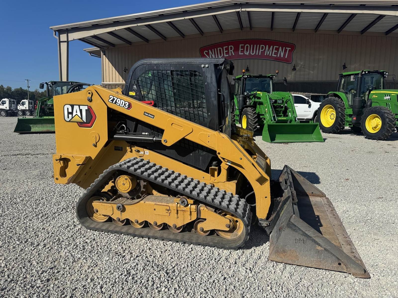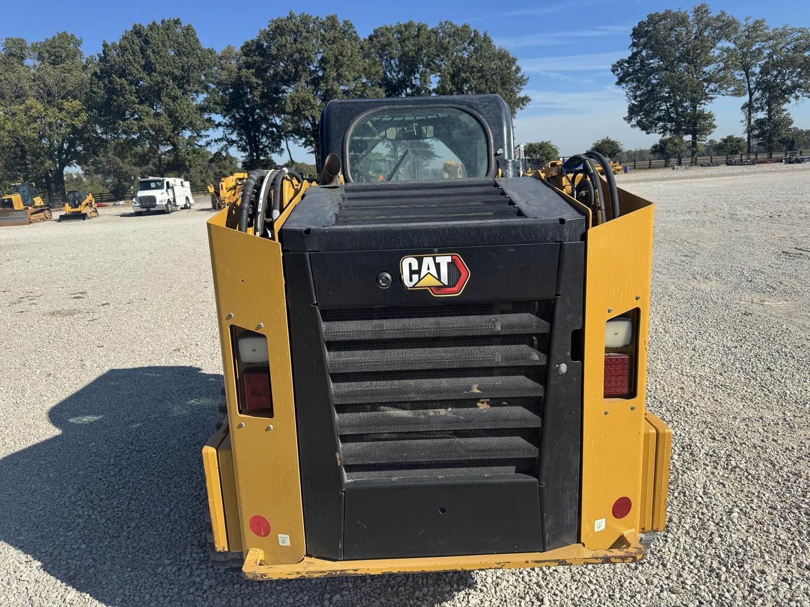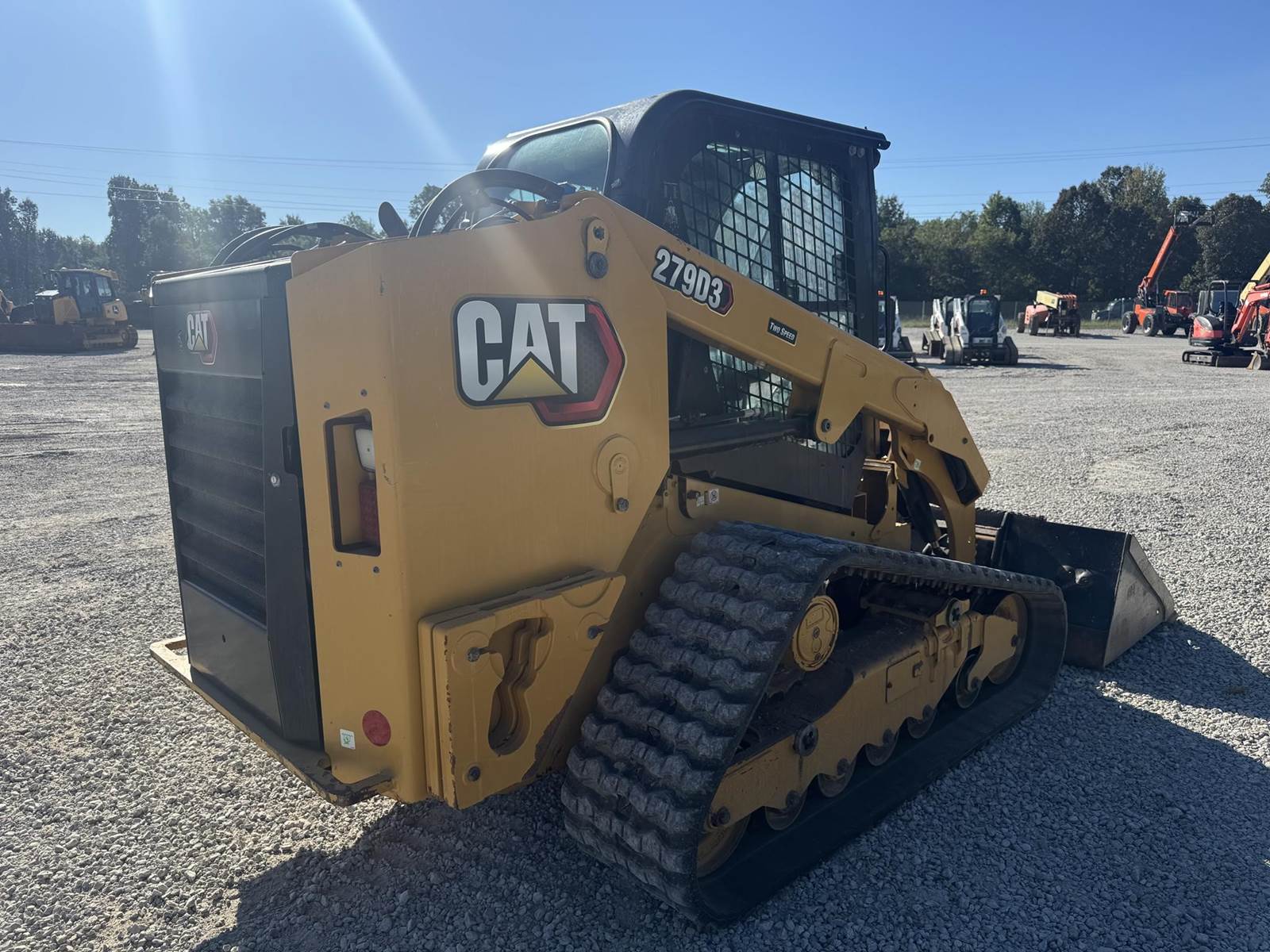 2023 CAT 279D3 WITH 2,777 HOURS!! Track Just replaced, No DEF Fluid required, 2-spd, counterweights, 86 inch bucket, joystick controls, Enclosed cab, A/C, radio, LED Lighting, back up camera, No active diagnostic trouble codes! ALSO includes standard flow grapple!!