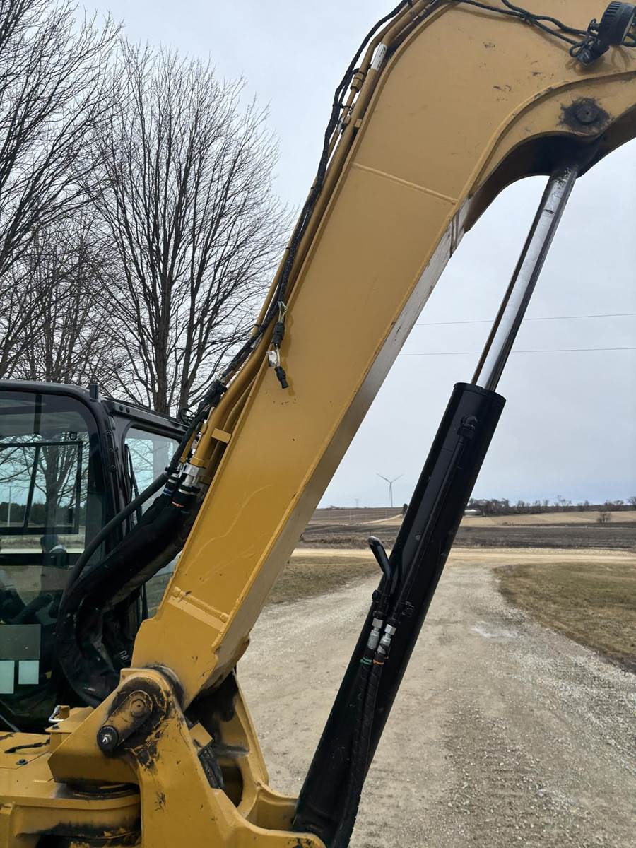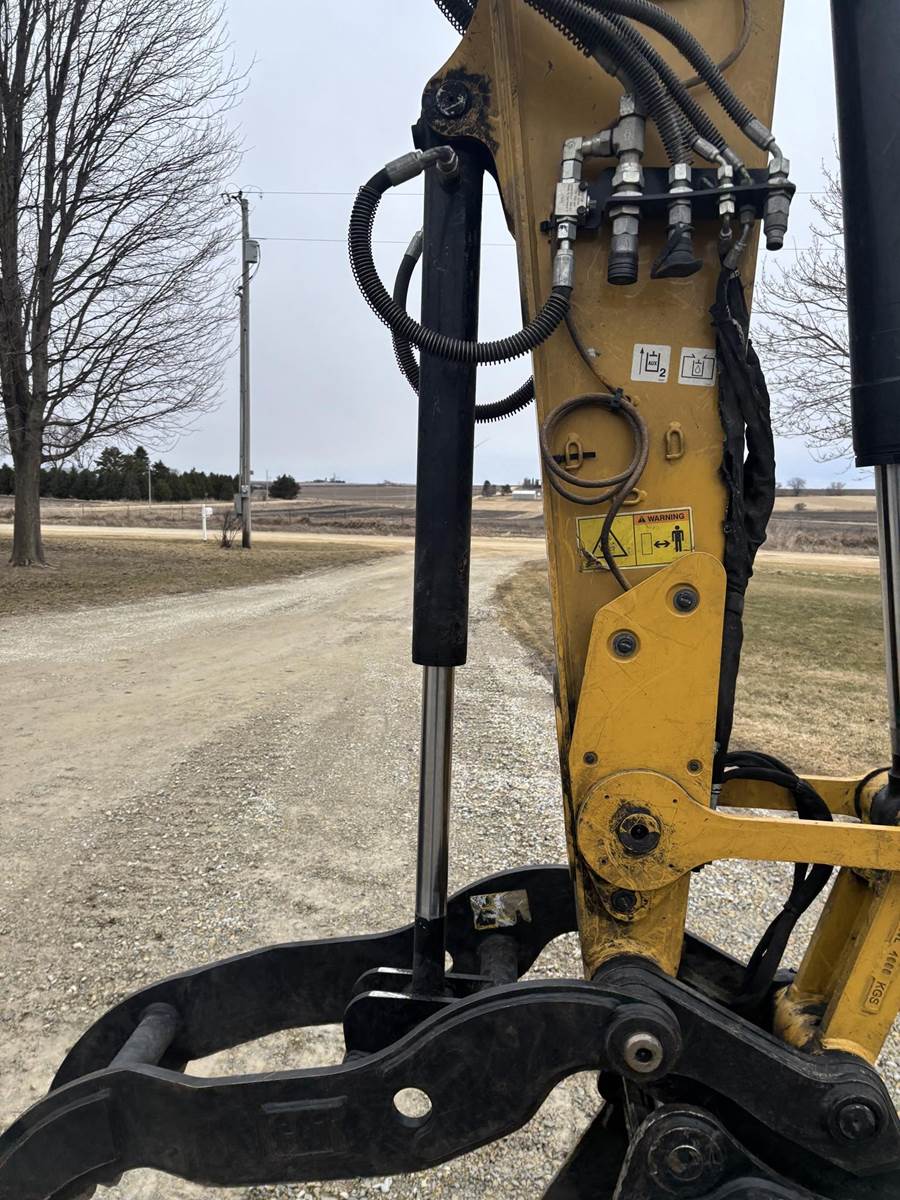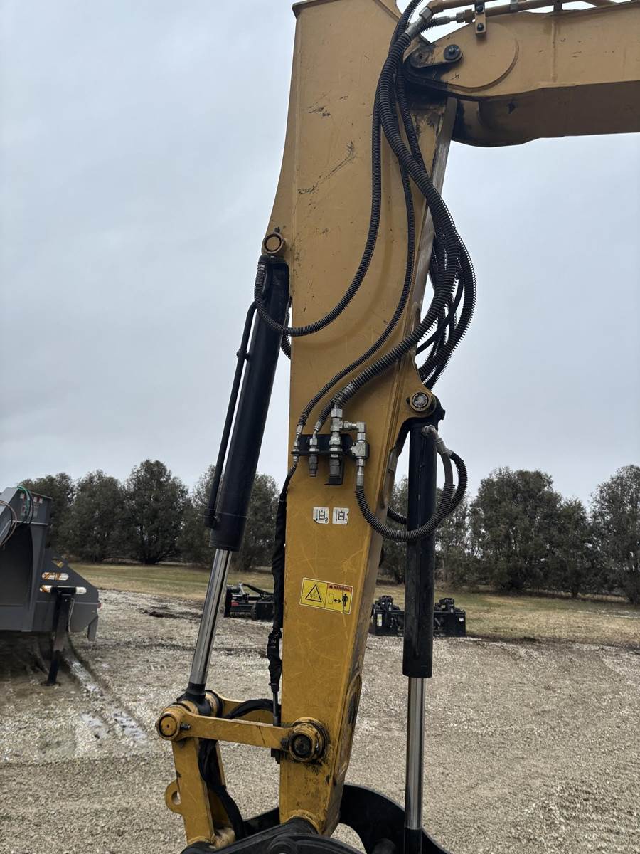 Caterpillar 4 Cylinder Turbo Diesel Engine, 2 Speed, 2D Grade Assist, Extra Counter Weight, Joystick Controls, Approx 90" Front Blade Width, Approx 24" Bucket Width, Rotate and Swing Boom, Hydraulic Thumb, Quick Coupler, EROPS, Heat, A/C, Radio, Approx 18" Rubber on Steel Track Pads