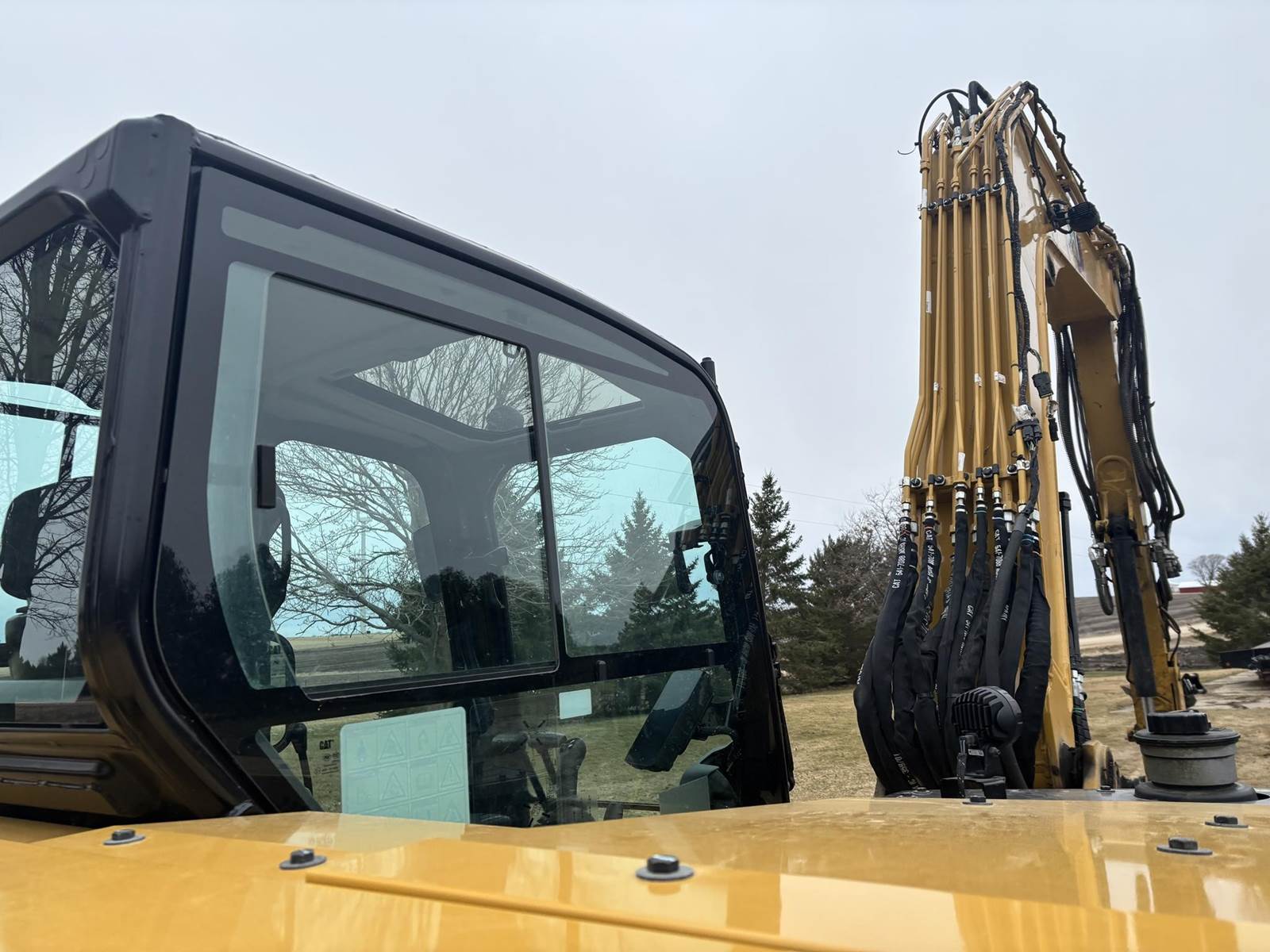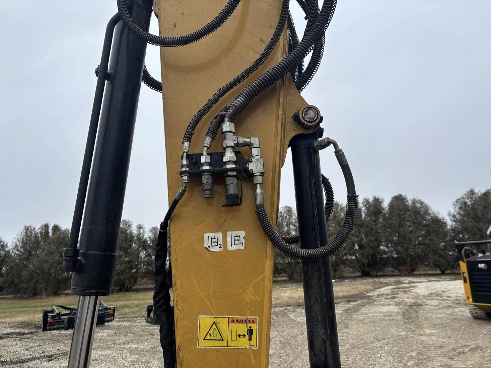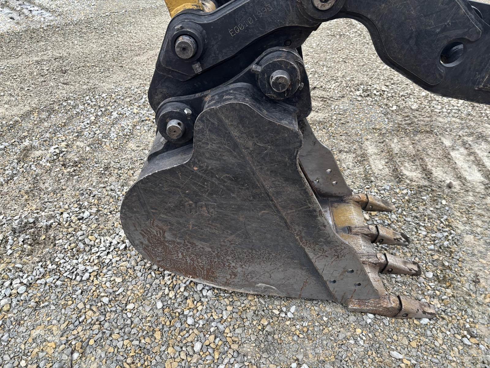 Caterpillar 4 Cylinder Turbo Diesel Engine, 2 Speed, 2D Grade Assist, Extra Counter Weight, Joystick Controls, Approx 90" Front Blade Width, Approx 24" Bucket Width, Rotate and Swing Boom, Hydraulic Thumb, Quick Coupler, EROPS, Heat, A/C, Radio, Approx 18" Rubber on Steel Track Pads