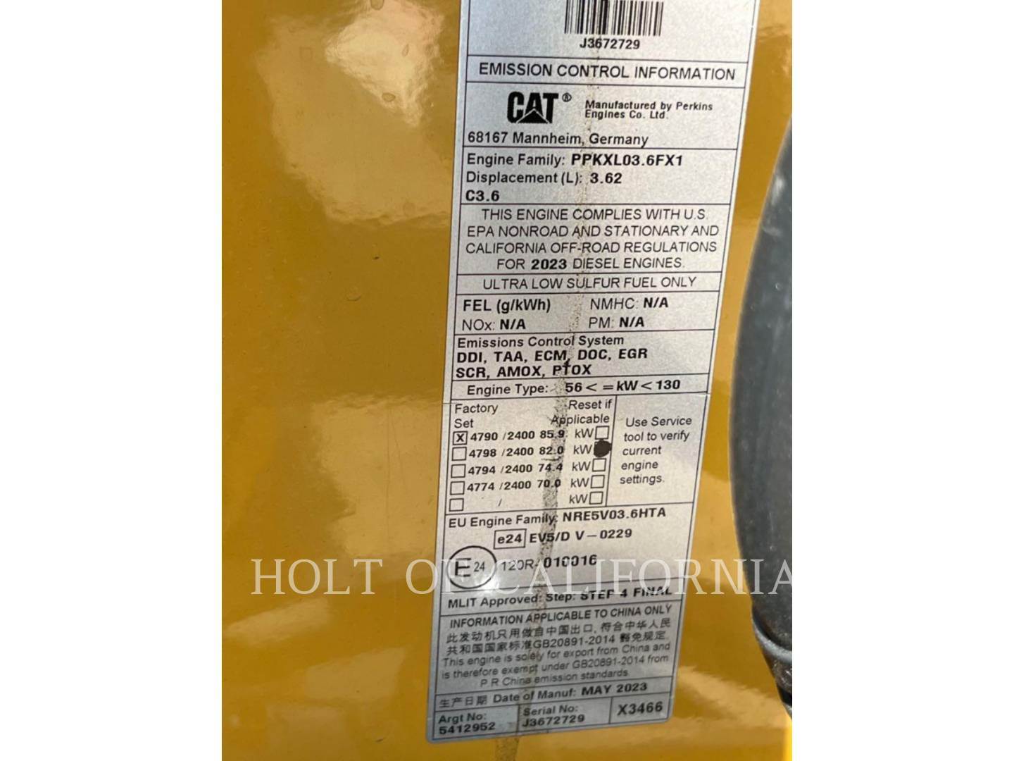 Emissions Level - EPA - EPA TIER 4f