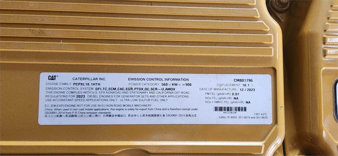 EPA/CARB TIER 4F EMISSION CERT