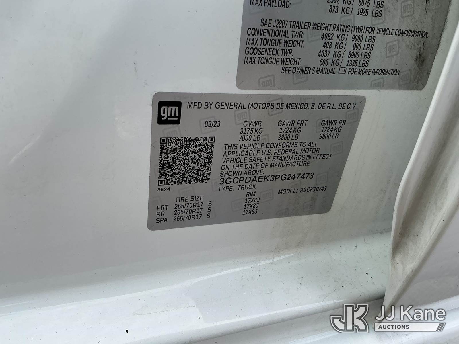 2023 Chevrolet Silverado 1500 4x4 Crew-Cab Pickup Truck, 4-cyl gas, Auto, A/C, (93,754 miles) (Runs & Moves, Paint Damage, Missing Rear Seat) This is a Titled Item NOTE: This unit is being sold AS IS/WHERE IS via Timed Auction and is located in Plymouth Meeting, PA. Inspection & preview days for this unit are the 2 business days prior to the first day of items closing for this auction, item is located at 1402 Conshohocken Rd Plymouth Meeting, PA 19462 and hours of operations are 8a-4p. For pre-sale questions, please contact Bruce Thomas @ (267) 887-0392 or bruce.thomas.jr@jjkane.com. (Buyer is responsible for removal. Assistance by consignor or JJ Kane Auctions is not assured.)