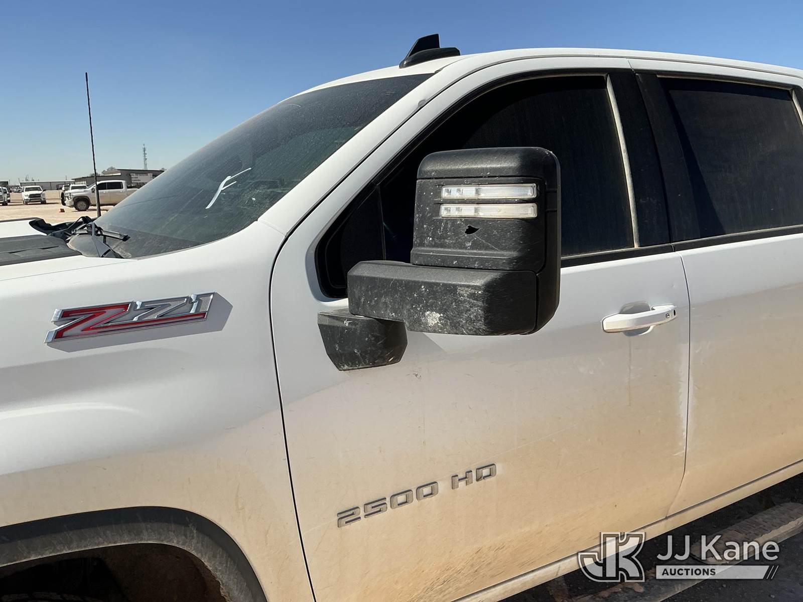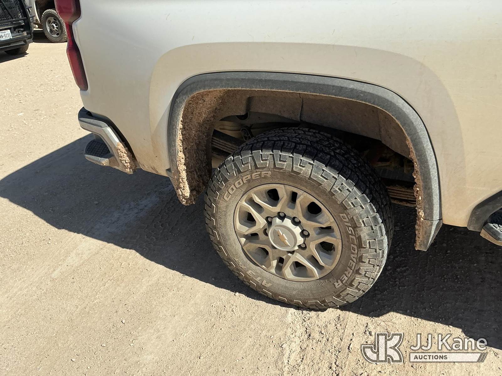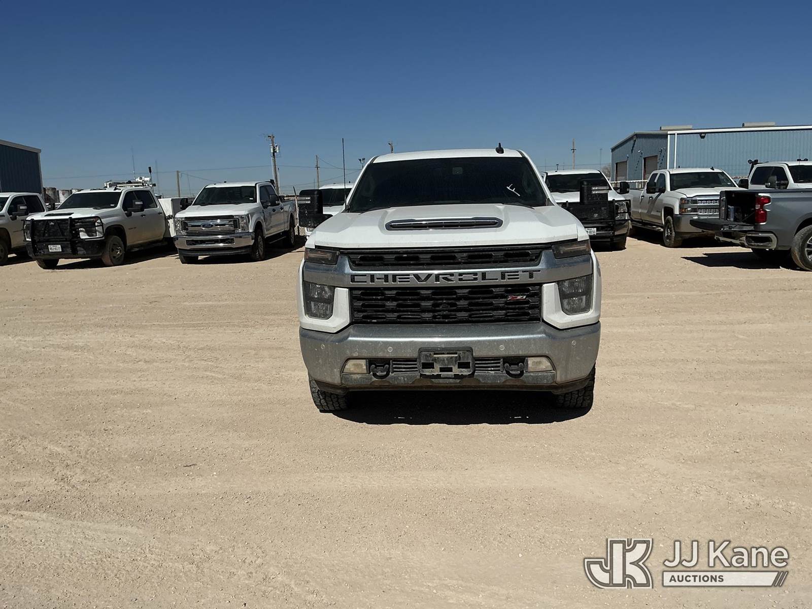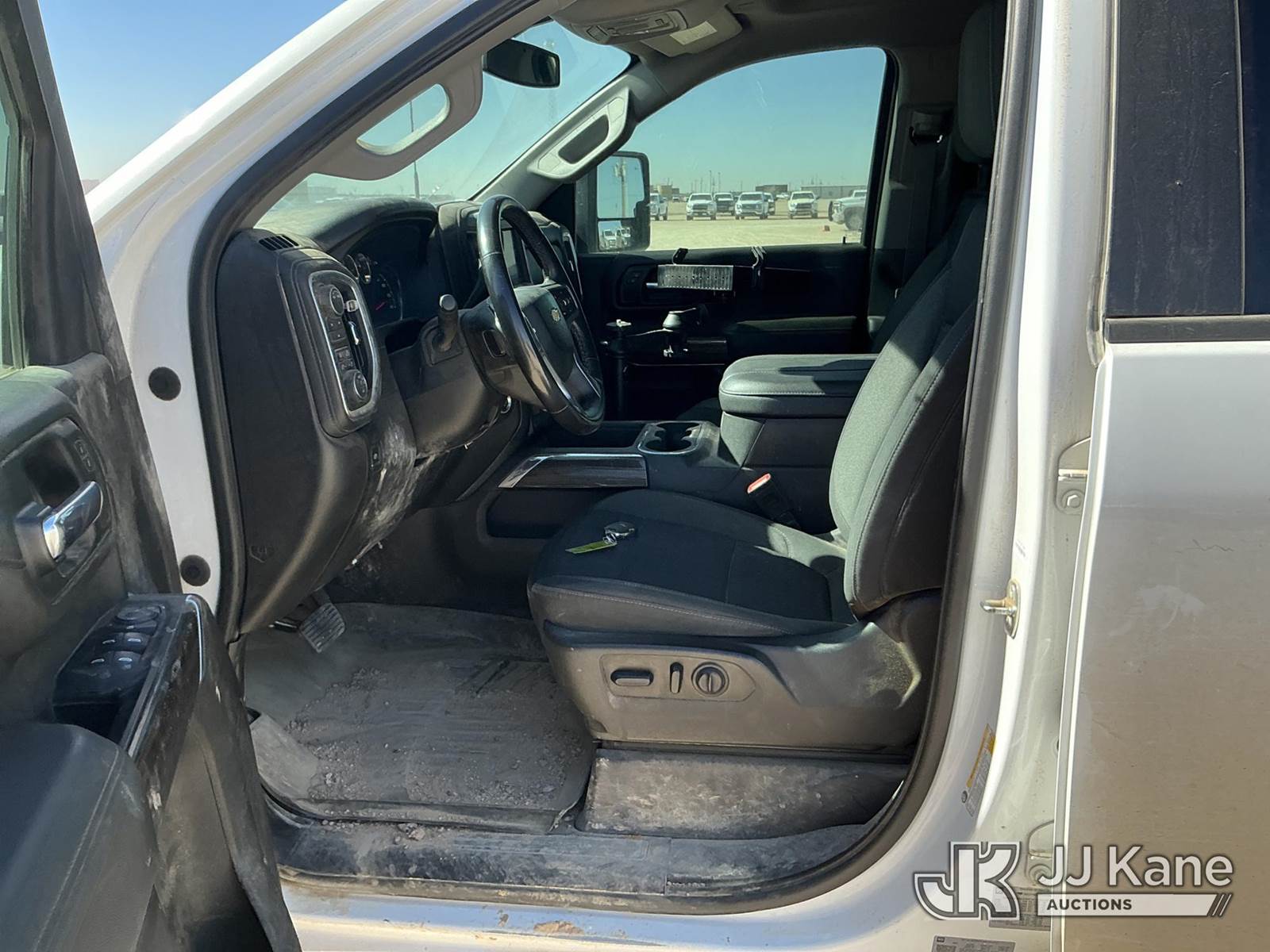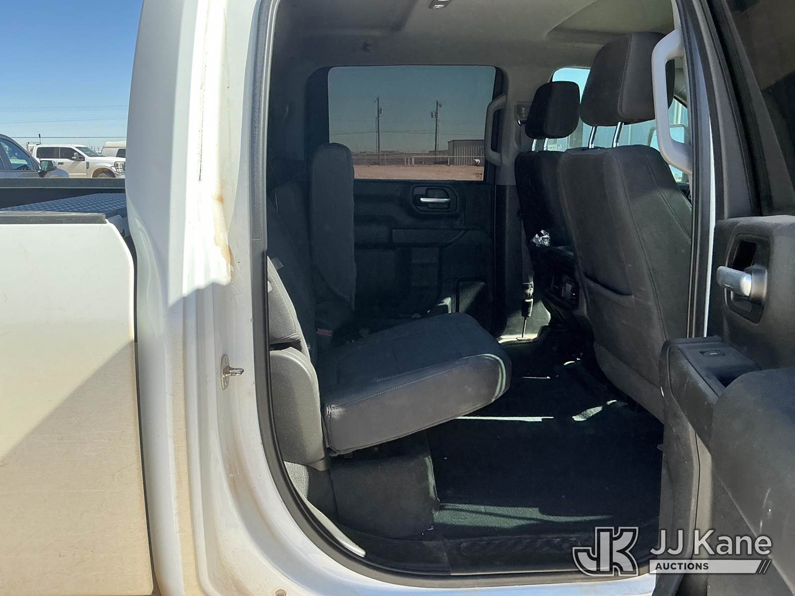 2023 Chevrolet Silverado 2500HD Crew-Cab Pickup Truck, 8-cyl gas, 4wd, 6-Speed Automatic, A/C, with Cab Mounted Computer Work Station & Bed Toolbox , (99,516 miles) (Runs & Moves) (Windshield Is Cracked, Body Damage Dents And Scratches All Around, Rear Bumper Left Side Has Significant Damage Large Dent, Driver Side Mirror Assembly Is Damaged Hole) (Reads 5,489 hours) This is a Titled Item NOTE: This unit is being sold AS IS/WHERE IS via Timed Auction and is located in Midland, TX. For pre-sale questions please call EJ Brown at (915) 341-2565. (Buyer is responsible for removal. Assistance by consignor or JJ Kane Auctions is not assured.)