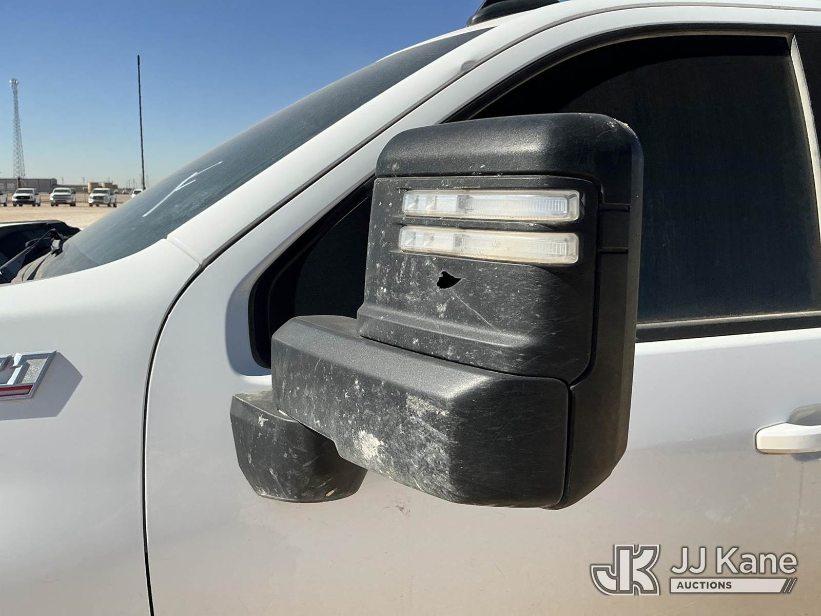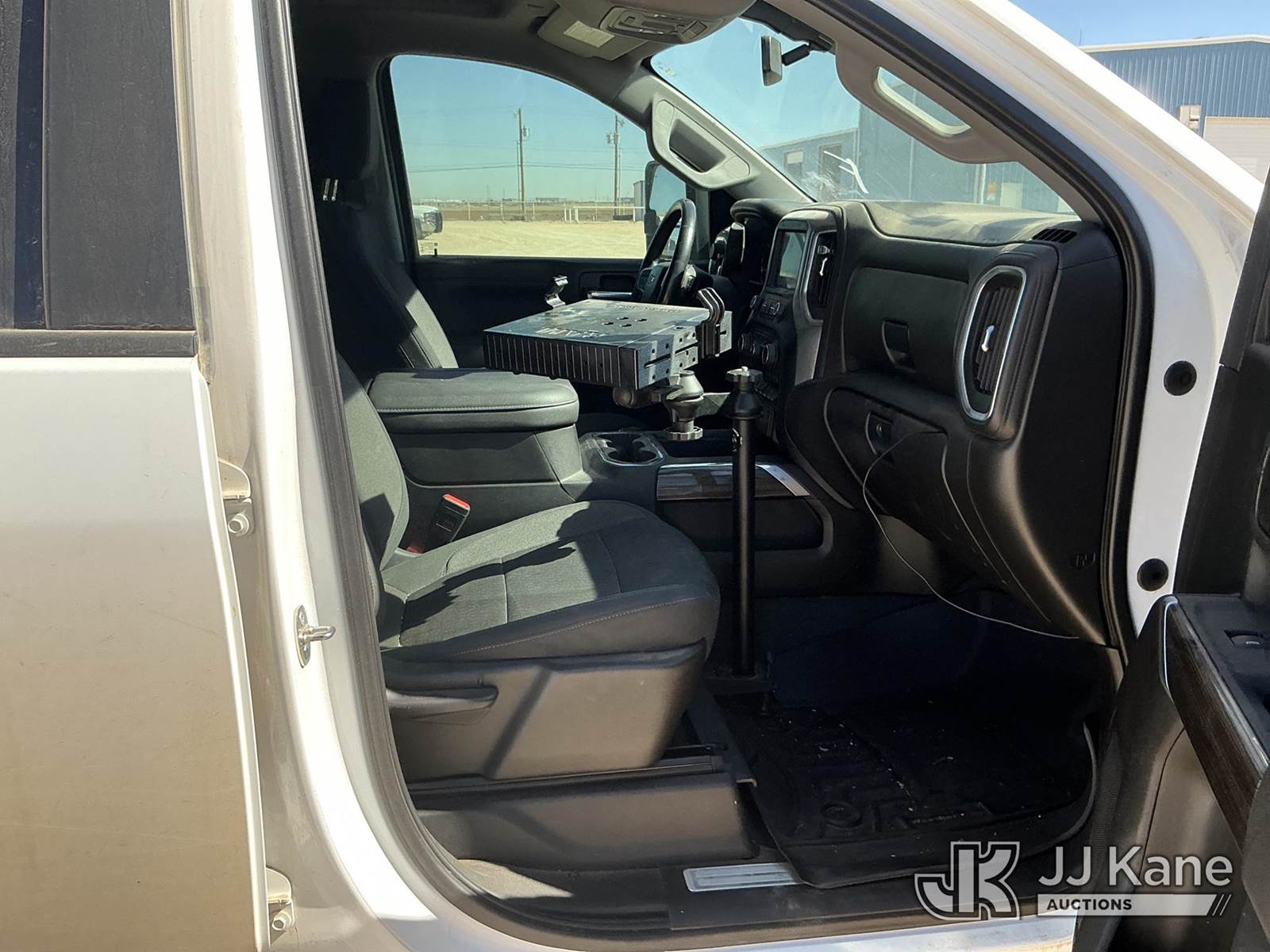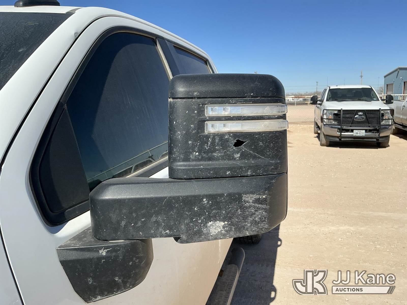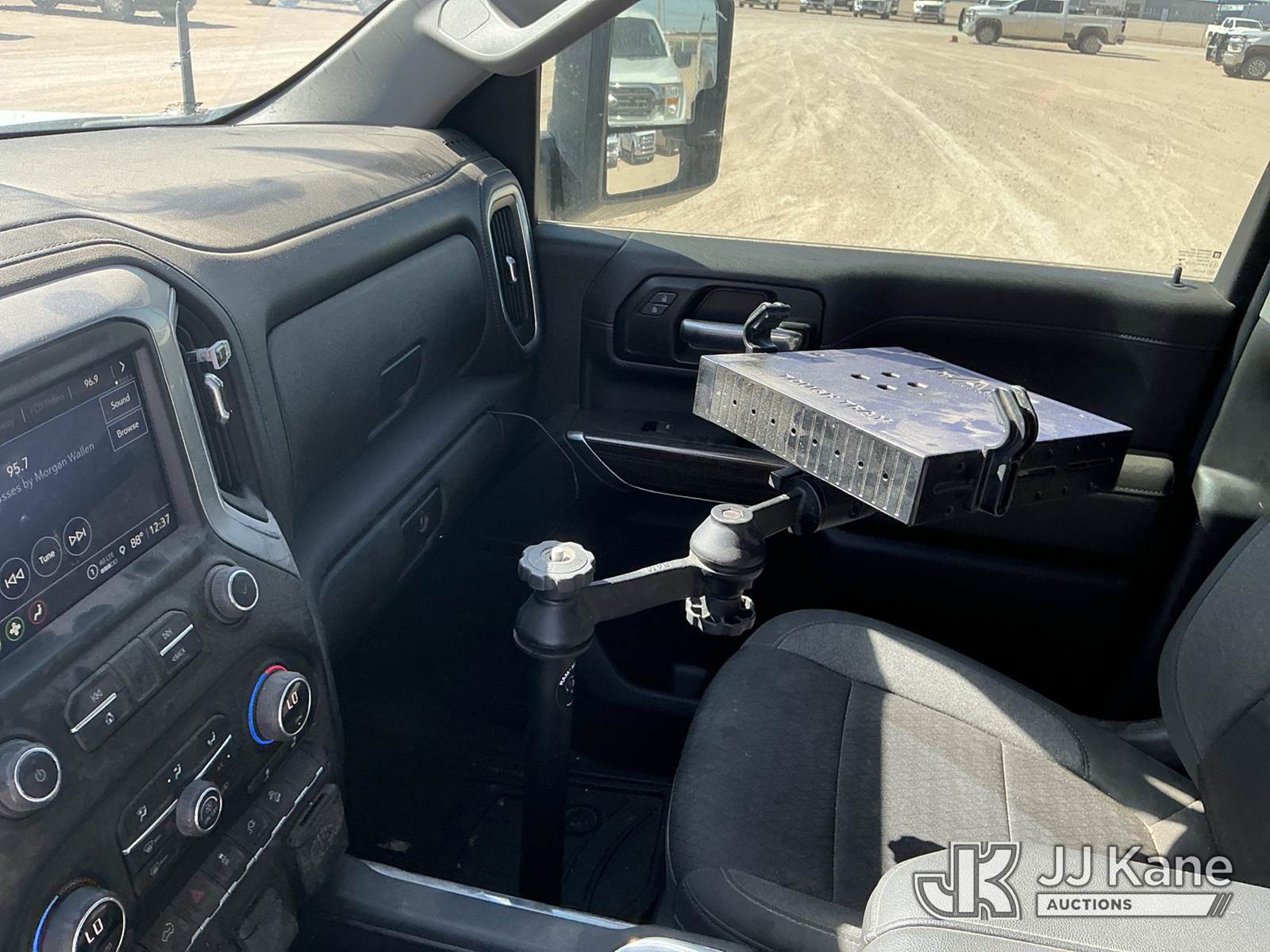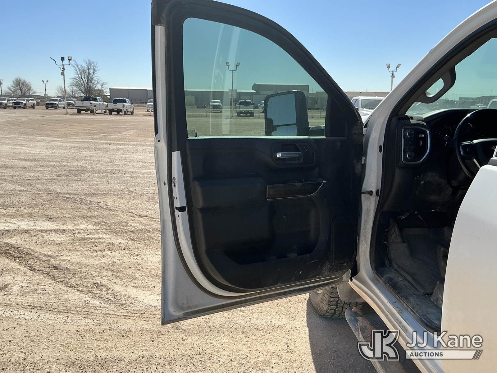 2023 Chevrolet Silverado 2500HD Crew-Cab Pickup Truck, 8-cyl gas, 4wd, 6-Speed Automatic, A/C, with Cab Mounted Computer Work Station & Bed Toolbox , (99,516 miles) (Runs & Moves) (Windshield Is Cracked, Body Damage Dents And Scratches All Around, Rear Bumper Left Side Has Significant Damage Large Dent, Driver Side Mirror Assembly Is Damaged Hole) (Reads 5,489 hours) This is a Titled Item NOTE: This unit is being sold AS IS/WHERE IS via Timed Auction and is located in Midland, TX. For pre-sale questions please call EJ Brown at (915) 341-2565. (Buyer is responsible for removal. Assistance by consignor or JJ Kane Auctions is not assured.)