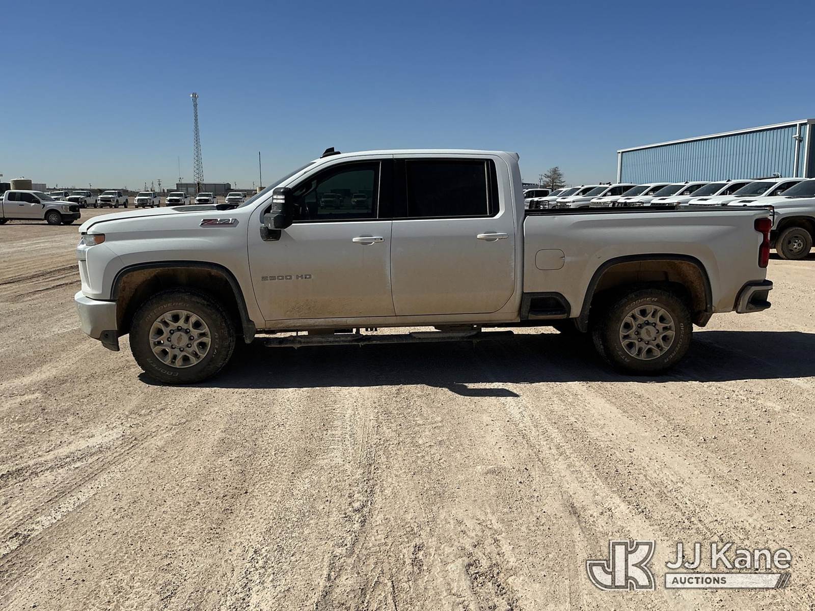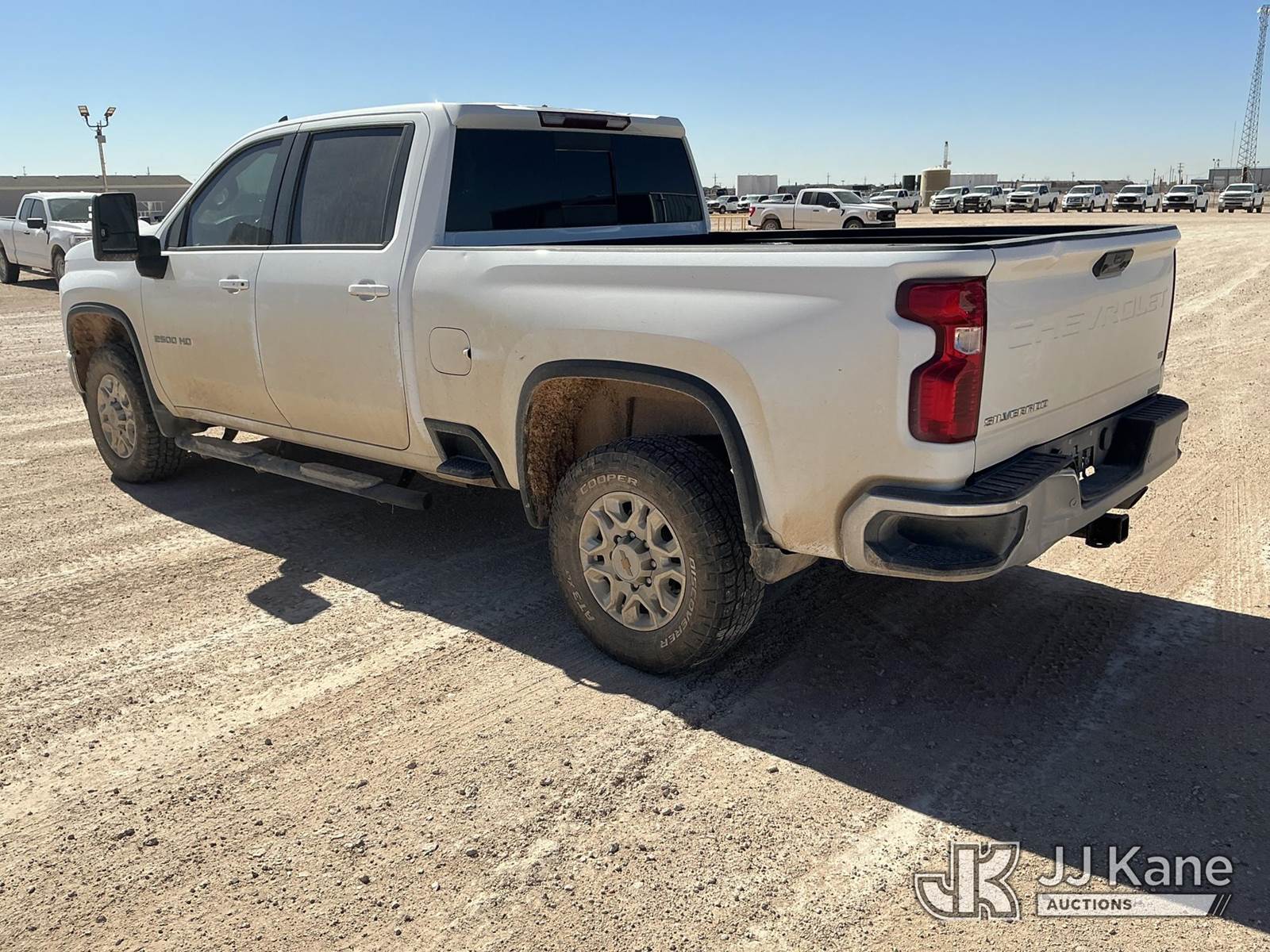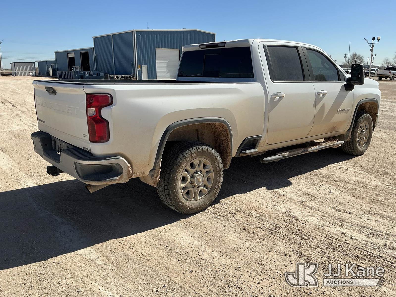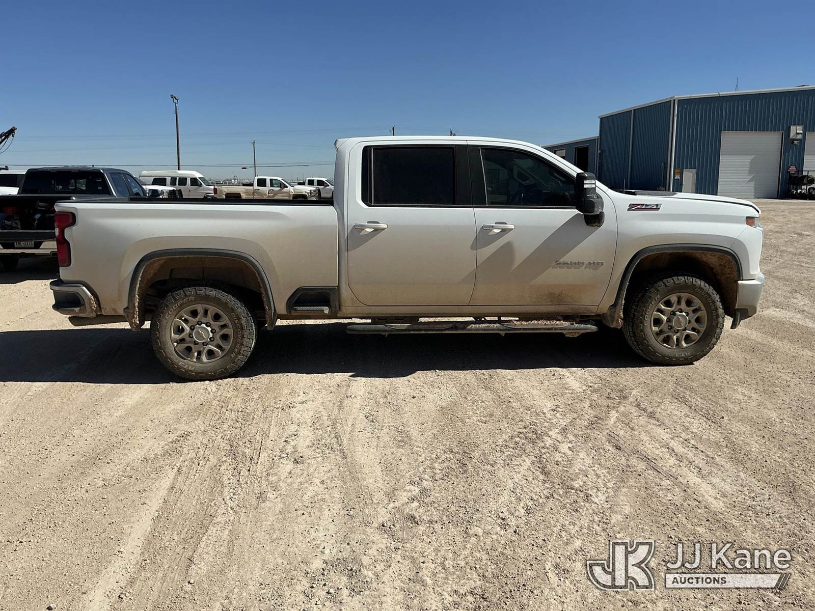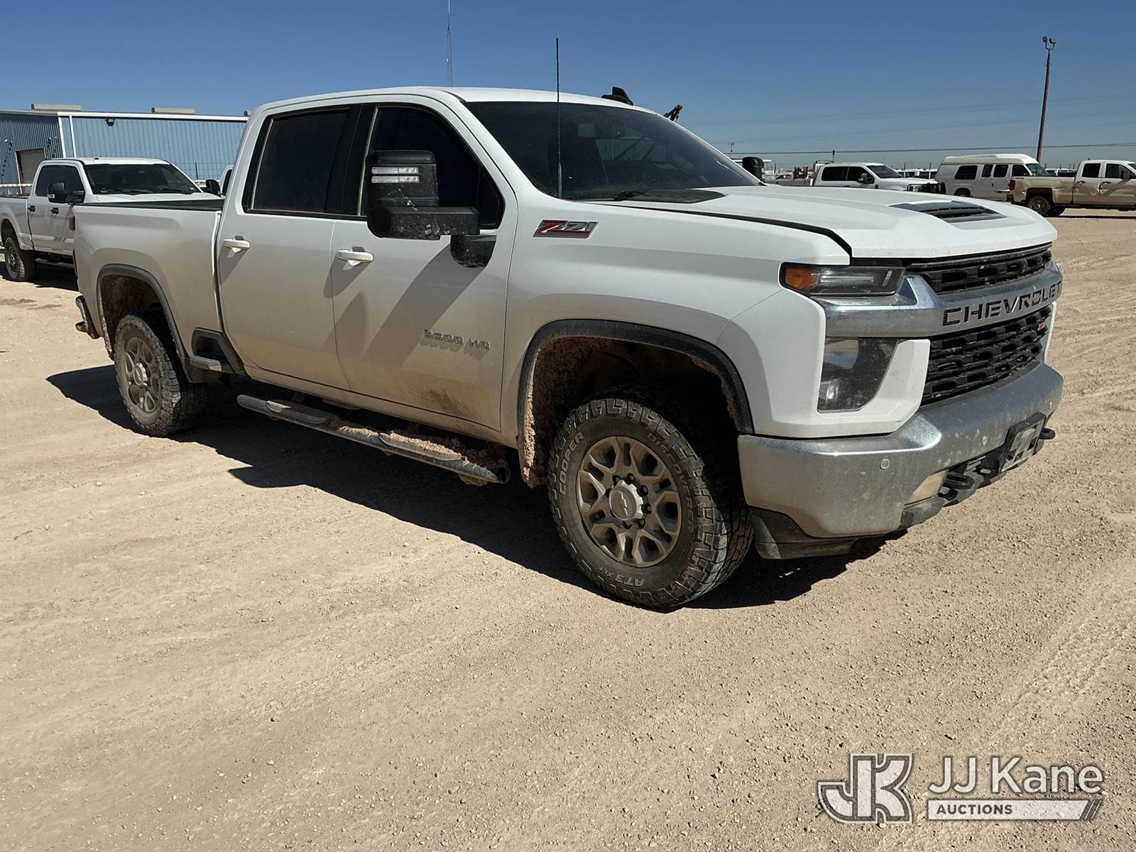 2023 Chevrolet Silverado 2500HD Crew-Cab Pickup Truck, 8-cyl gas, 4wd, 6-Speed Automatic, A/C, with Cab Mounted Computer Work Station & Bed Toolbox , (99,516 miles) (Runs & Moves) (Windshield Is Cracked, Body Damage Dents And Scratches All Around, Rear Bumper Left Side Has Significant Damage Large Dent, Driver Side Mirror Assembly Is Damaged Hole) (Reads 5,489 hours) This is a Titled Item NOTE: This unit is being sold AS IS/WHERE IS via Timed Auction and is located in Midland, TX. For pre-sale questions please call EJ Brown at (915) 341-2565. (Buyer is responsible for removal. Assistance by consignor or JJ Kane Auctions is not assured.)