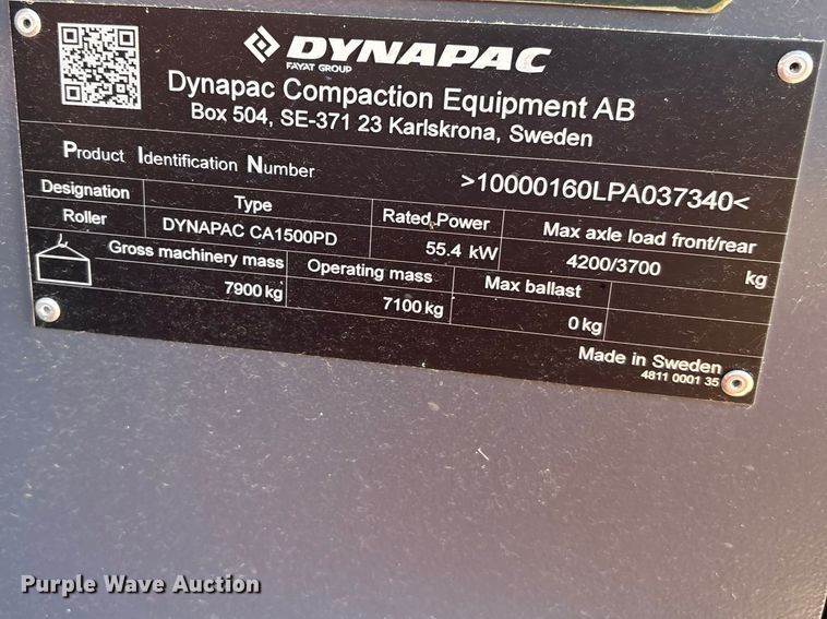 2023 Dynapac CA1500PD single drum vibratory roller