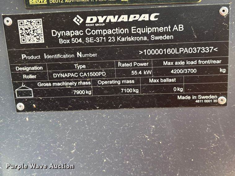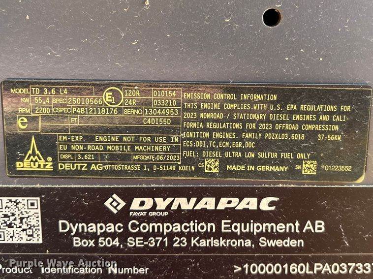2023 Dynapac CA1500PD single drum vibratory roller