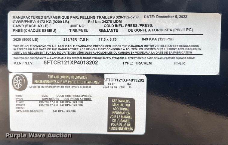 2023 Felling Trailers FT-8R reel trailer
