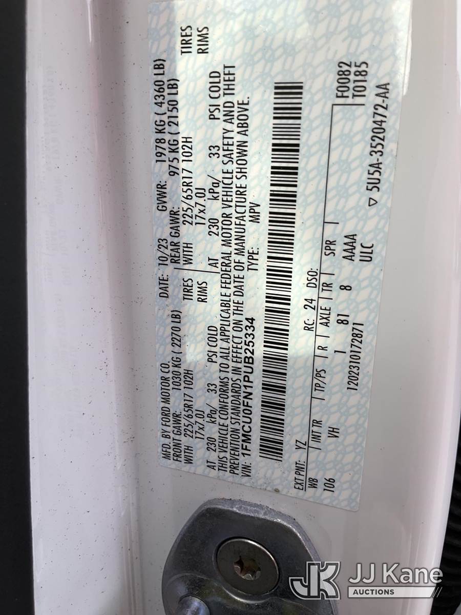 2023 Ford Escape 4-Door Sport Utility Vehicle, 1.5L L3 gas, Auto, FWD, A/C, (21,534 miles) (Runs & Moves) (Windshield And Roof Is Damaged From Tree, Can't Be Driven Safely, Must Be Hauled Towed Away) This is a Titled Item NOTE: This unit is being sold AS IS/WHERE IS via Timed Auction and is located in Ocala, FL. For more information & removal arrangements please contact Mike Lessard @ 352-629-6677. (Buyer is responsible for removal. Assistance by consignor or JJ Kane Auctioneers is not assured.)