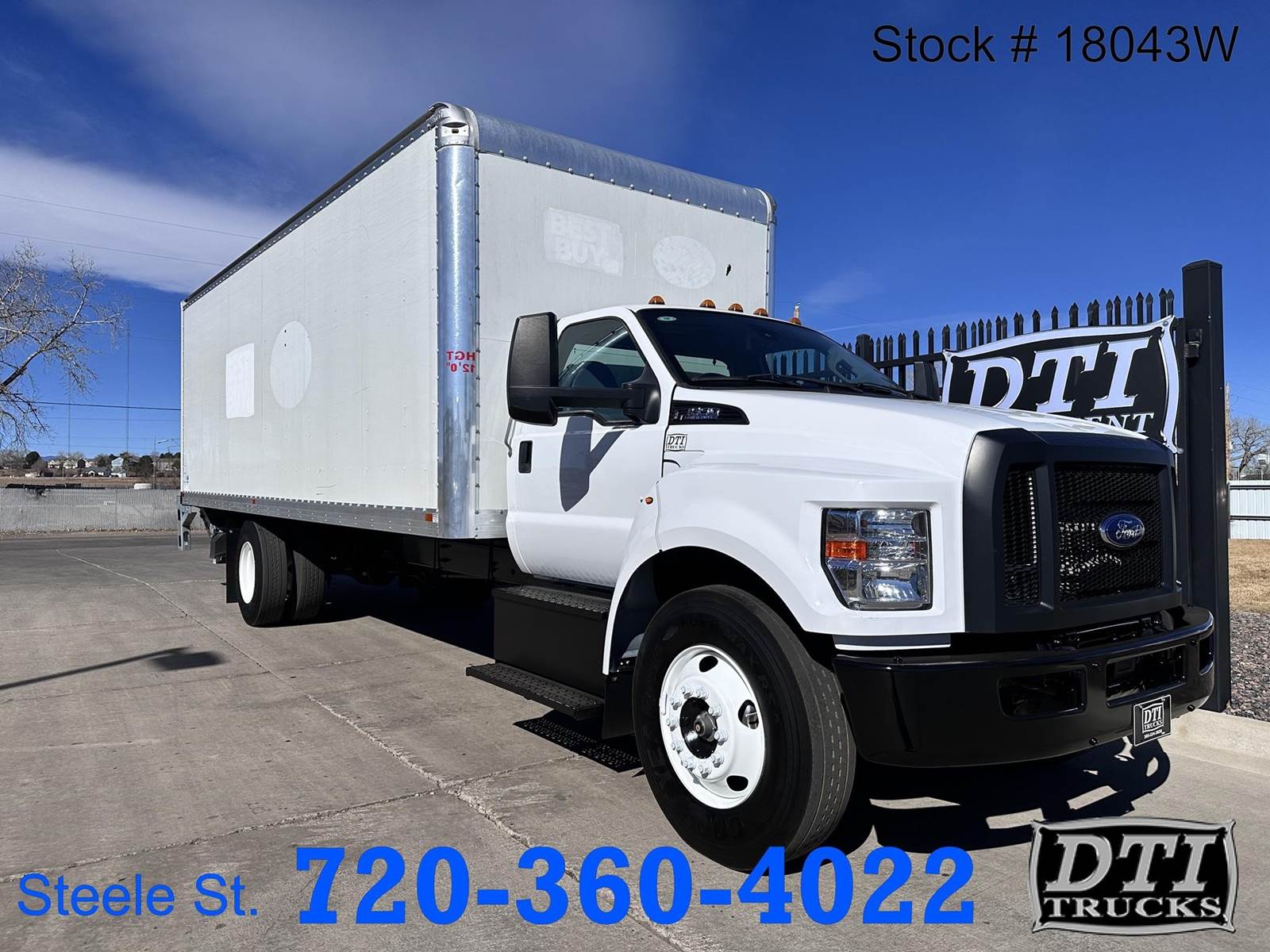 2023 Ford F650 24ft Box Truck, Ford 7.3L Gas V8 Gas Engine With 335HP, Ford Torq Shift 6 Speed Automatic Transmission, 31,941 Miles,1,217 Engine Hours, 26,000 Lbs. GVWR (UNDER CDL), 8,500 Lb. Front Axle, 19,000Lb. Rear Axle,187" CA, 290" Wheelbase, Hydraulic Brakes, Spring Suspension, Standard Cab, A/C, AM/FM/Aux Radio, Power Windows And Locks, Cruise Control, 3 Passenger Vinyl Seating, 50 Gallon Fuel Tank, Rubber Cab Flooring, 11R/22.5 Aluminum Wheels with Great Tires, 24'L x 102"W x 91"H, Hardwood Flooring, 2 Row of E track, Waltco 3,000 Lbs. Capacity Liftgate 84"W X 60"L, This Truck is available at DTI Trucks 8080 Steele St, Denver, CO 80229. Call our truck sales team for more information at . FINANCING OPTIONS AVAILABLE. We Pick Up Out Of State Customers From The Airport! Stock #18043W