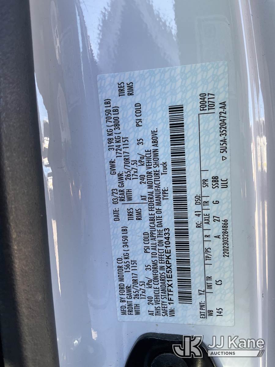 2023 Ford F150 4x4 Extended-Cab Pickup Truck, 5.0L V8 OHV 16V gas, 6-Speed Automatic, A/C, with ARE Fiberglass Topper, (56,903 miles) (Runs & Moves) (Front End Damage, Missing Parts, Missing Both Bumpers, No Rear Seat) (Reads 2,226 hours) This is a Titled Item NOTE: This unit is being sold AS IS/WHERE IS via Timed Auction and is located in South Beloit, IL. Inspection & preview days for this unit are the 2 business days prior to the first day of items closing for this auction, item is located at 14354 Dearborn Ave South Beloit, IL and hours of operations are 8a-4p. For pre-sale questions, please contact Derek Eklund at (608) 904-0618 or (derek.eklund@jjkane.com). (Buyer is responsible for removal. Assistance by consignor or JJ Kane Auctions is not assured.)