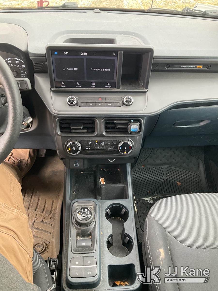 2023 Ford Maverick Crew-Cab Pickup Truck, 4-cyl gas, Continuously Variable Transmission, A/C, (50,070 miles) (Starts With Jump, Runs, Does Not Move) (Wrecked, Front End Damage, Check Engine Light On, Parts Removed/Missing, Body Damage, Warnings Of Low Coolant And Low Oil Pressure, Buyer Responsible For Loading/Removal Oil Pressure) This is a Titled Item NOTE: This unit is being sold AS IS/WHERE IS via Timed Auction and is located in Hawk Point, MO. For more information & removal arrangements please contact Adam Stanek at 636-295-1594. (Buyer is responsible for removal. Assistance by consignor or JJ Kane Auctions is not assured.)