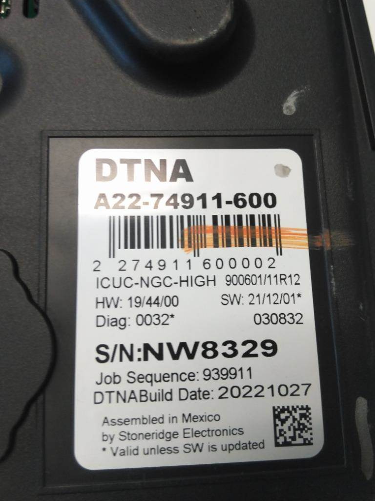 2019 CASCADIA 126 GAUGE CLUSTER. PN A22-75412-000.