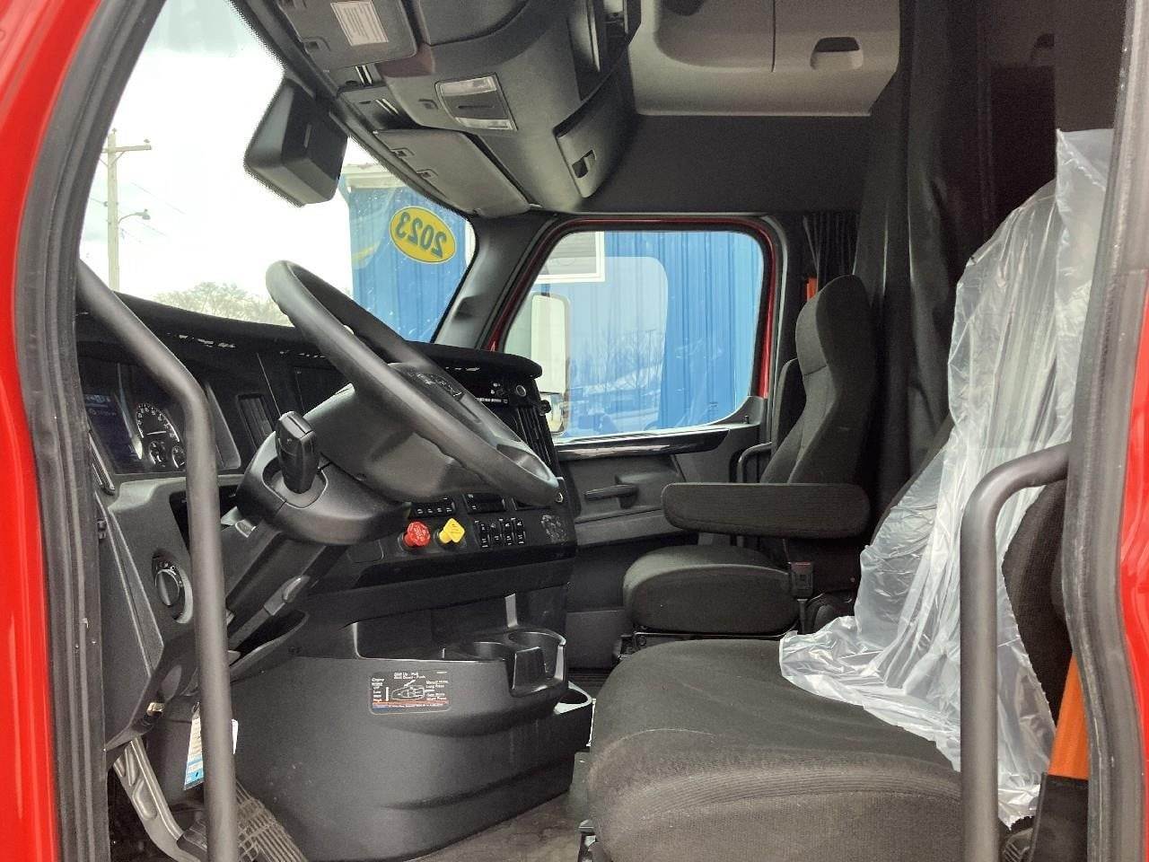 2023 Freightliner Cascadia 126 Condo 62" Double Bunk Sleeper, Detroit DD15 455HP Engine, DT12 12 Spd Detroit DT12-DC Transmission, Air Ride, 52,350 GVW, 12,500# DA-5-12.5-3 Front Axle, 40,000# Detroit DART-400-4N Rear Axle, 2.16 Ratio, 225" Wheelbase (CA/CT-88" EOF-147"), 295/75R22.5 Tires (Front: 10/32 - Rear: 9/32), Aluminum Wheels, Air Brakes 50%, Aluminum 80/80 Fuel Tank, AC, Cruise, 5th-Wheel Air Slide, Power Windows, Power Steering, Tilting & Telescoping, Heated/Power Mirror