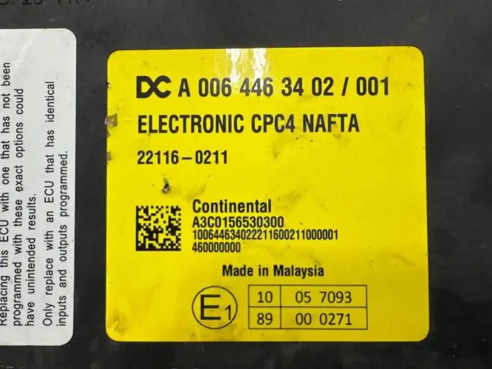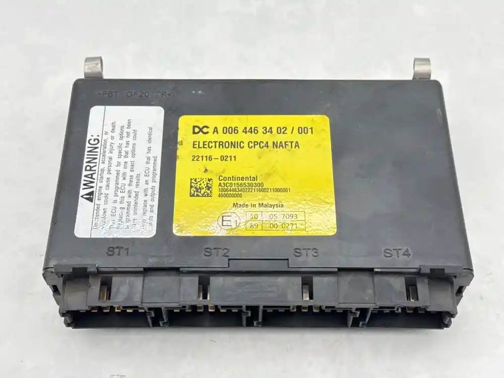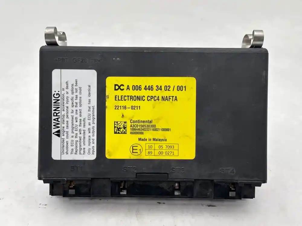 (Used) Freightliner 2023 M2 106 VEHICLES ECM- DC A 006 446 34 02 / 001, ELECTRONIC CPC4 NAFTA, 22116-0211, A3C0156530300, 10064463402221160021000001, 460000000, E1, 10 05 7093, 89 00 0271, 4 Plugs, ST1: 18 PINS, ST2: 18 PINS, ST3: 21 PINS, ST4 18 PINS, For more information about this item, give us a call. We ship Worldwide! (CRG HEAVY TRUCK PARTS) 929 W PULASKI HWY ELKTON, MD 21921