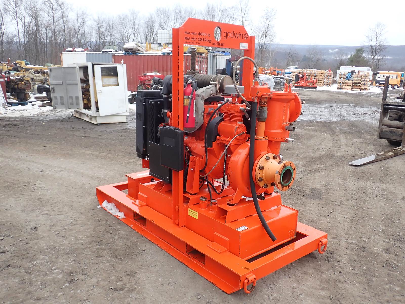 2023 Godwin SD150M 6x6 water pump, 6" inlet, 6" discharge, 3" solids handling, 64 PSI working pressure rating, 138 PSI max casing pressure, 2135 GPM max flow, 120' max head, 111.3 hours, Isuzu 4LE2T turbo diesel engine, 50 HP rating, skid mounted, 6" couplers installed. EXCELLENT PUMP -- SEE VIDEO. HOLDS EXCELLENT SUCTION, FLUID END LOOKS EXCELLENT. AWESOME SET UP HERE AND A TIER 4 COMPLIANT DIESEL ENGINE -- UNIT IS LIKE NEW IN EVERYTHING BUT THE PRICE TAG!