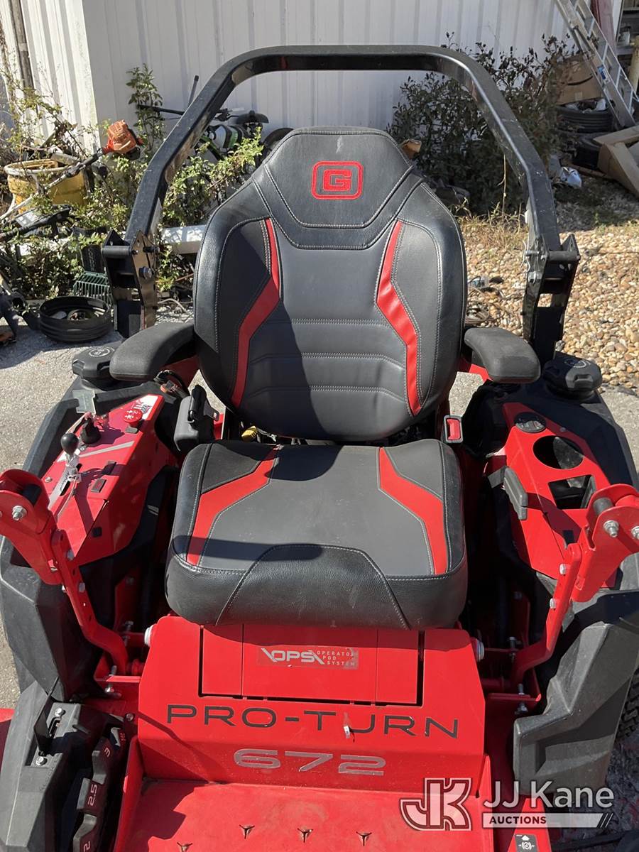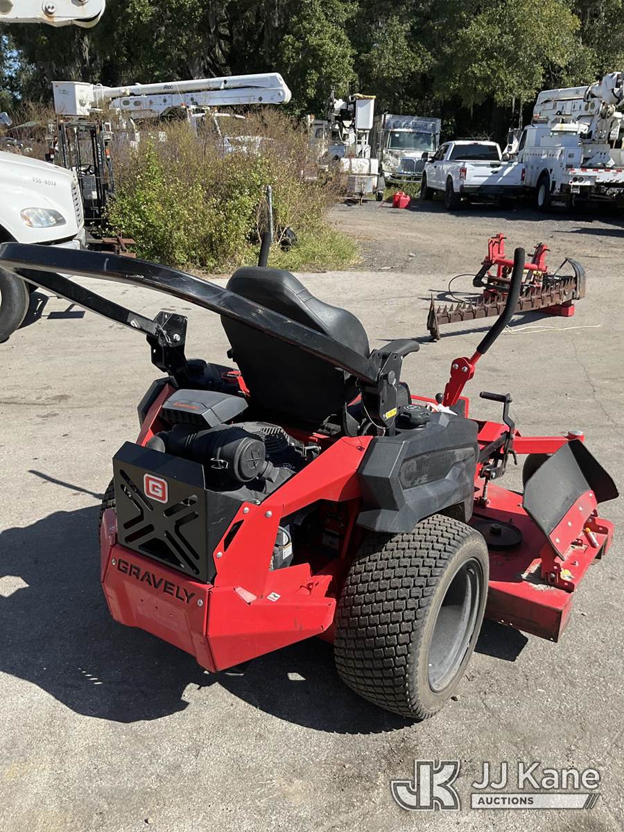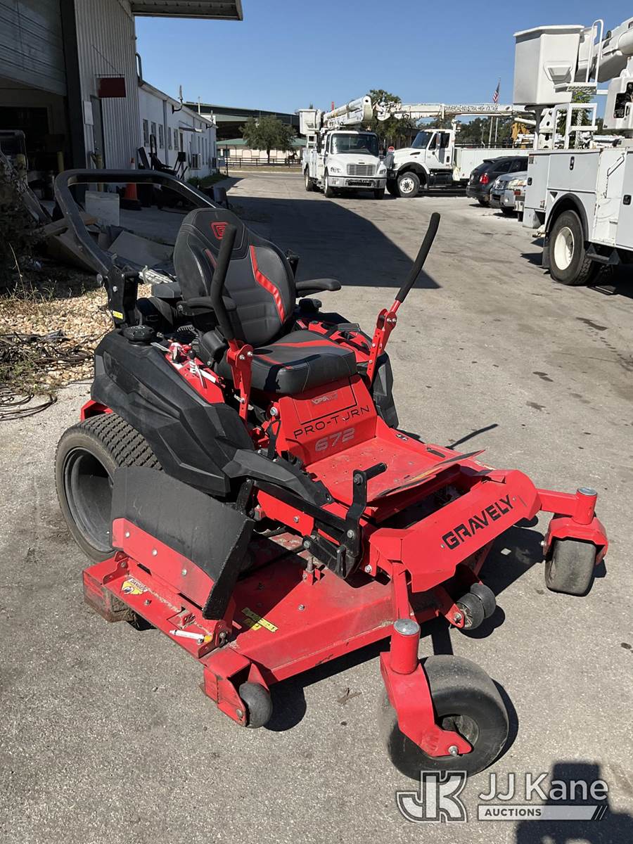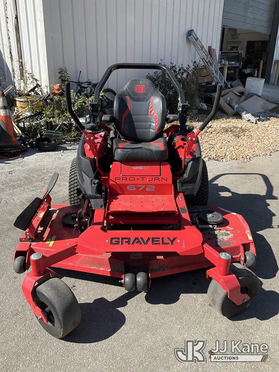 2023 Gravely Proturn 472 Zero Turn Riding Mower, s/n 5130, Kawasaki Hydrostatic, gas, (Runs) (Cutting Deck Does Not Operate) (Seller States: Repairs Needed To Engine & Body) (Reads 1,006 hours) NOTE: This unit is being sold AS IS/WHERE IS via Timed Auction and is located in Ocala, FL. Inspection & preview days for this unit are by appointment only; please contact us at contact@jjkane.com or 84-Go-JJKane for more details. For more information & removal arrangements please contact Mike Lessard @ (352) 629-6677. (Buyer is responsible for removal. Assistance by consignor or JJ Kane Auctioneers is not assured.)