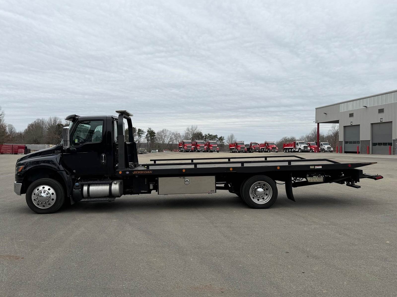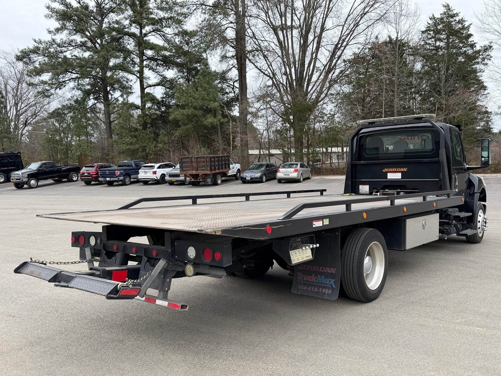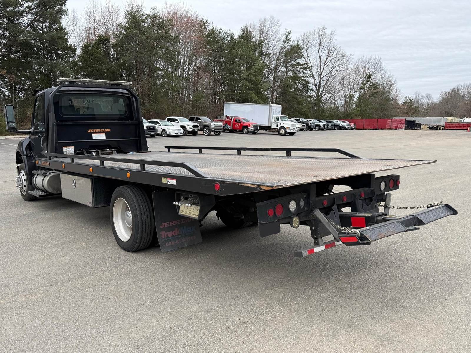 Under CDL, Single Axle, 22' JerrDan Steel Rollback, 102" W, Wheel Lift, Ramsey 5K Winch, Hydraulic Tilt, Cummins B6.7L 260 HP, Allison Automatic 6 Speed, Exhaust Brake, 4.63 Ratio, Air Ride, 8,000 FA, 17,500 RA, 25,500 GVWR, Tool Boxes, Air Brakes, P/S, A/C, AM/FM, Heated Mirrors, Cruise, Tilt/Tele Wheel, Power Windows, Locks, and Mirrors, High Back Driver Seat, 50 Gallon Aluminum Fuel Tank, 255/70R22.5 Tires on Aluminum Wheels Front and Outside Rear, Chrome Bumper