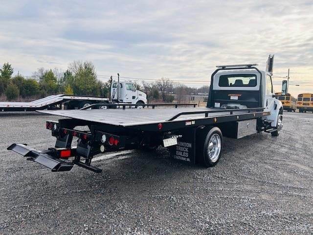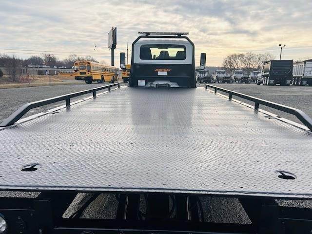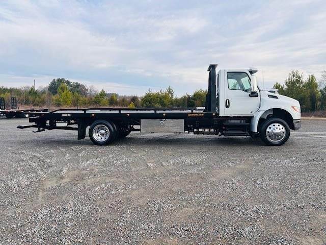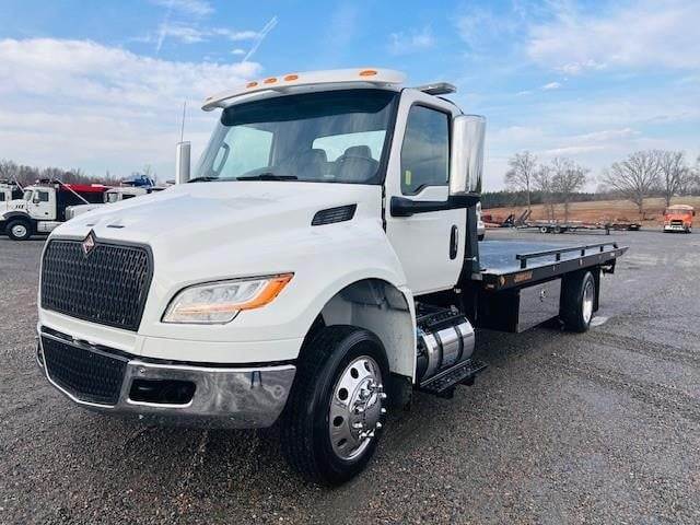 2023 International MV607 --- Single Axle, ISB Cummins 260 HP, Allison Automatic 6 Speed, 4.88 Ratio, 8,000 Front Axle, 17,500 Rear Axle, 225" Wheelbase, 18' 9" Bridge, Air Ride, Air Brake, Exhaust Brake, Axle Lock, 22' Steel Jerr-Dan Rollback Body, Light Bar, Buddy Seat, Wheel Lift, (2) 5' Tool Boxes, 8,000 Lb. Ramsey Winch, Aluminum Front Wheels, Aluminum Rear Wheels, Engine Heater Plug, 50 Gallon Aluminum Fuel Tank, Daylite Doors, Air Ride Cab, Dual High Back Seats, High Level Interior, Heated Mirrors, Cruise Control, Tilt Steering Wheel, AM/FM Bluetooth Radio, Power Windows, P/L, P/S, AC.