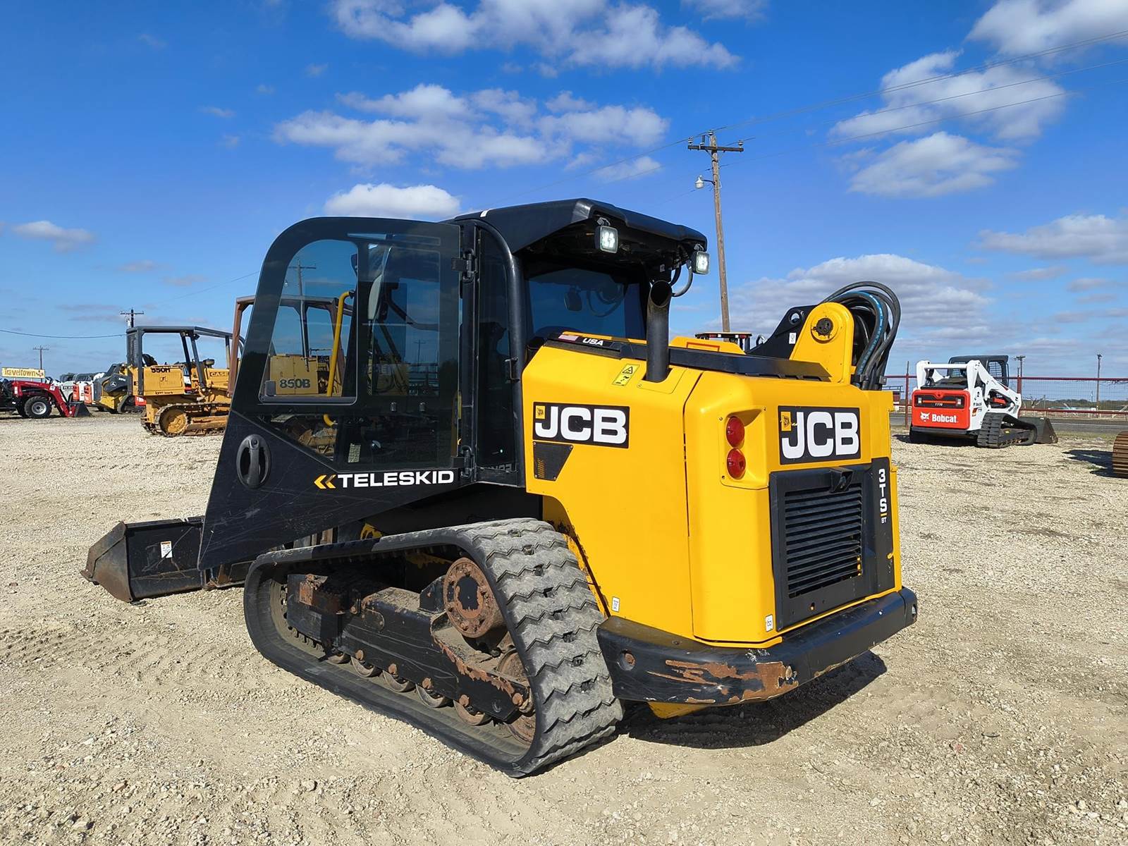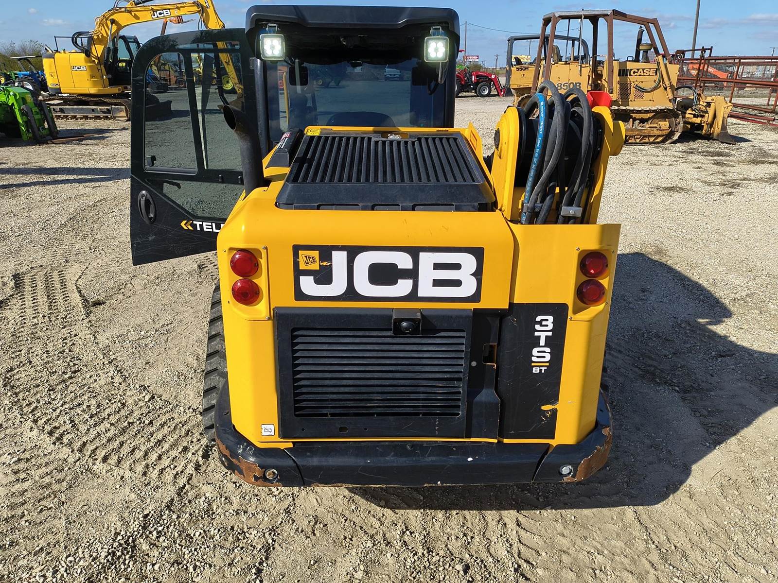 2023 JCB 3TS-8T TELESKID SKID STEER TRACK LOADER. IF YOU'RE LOOKING FOR THE BEST OF BOTH WORLDS HERE IT IS. ONLY 75X ORIGINAL HRS. TELESCOPIC BOOM. BOBCAT STYLE POWER QUICK ATTACH. HIGH FLOW. 2 SPD. PILOT CONTROLS. SIDE ENTRY. REVERSE CAMERA. RUNS STRONG AND CORRECT. PRICED TO SELL TODAY. CHEAPEST COMPARABLE CURRENTLY LISTED IN THE USA IS $64,500 (1 yr older and more HRS). BUY THIS ONE FOR THOUSANDS LESS. ALWAYS CALL FOR CURRENT AVAILABILITY. COMPETITIVE FINANCING AVAILABLE W.A.C. (no in-house) TROUGH OUR DIRECT WEBSITE ONLY AT WWVV.FASTLANEEQUIP.C0M. LOWER 48 USA SHIPPING AVAILABLE. CALL (972)57I-9674 OR (972)57I-lO55 TODAY.