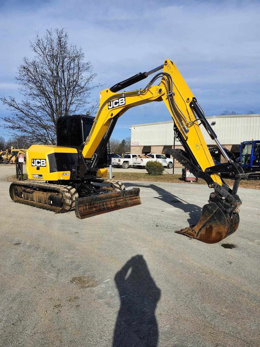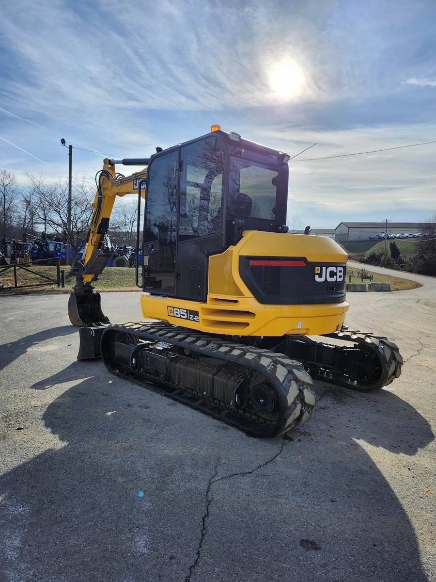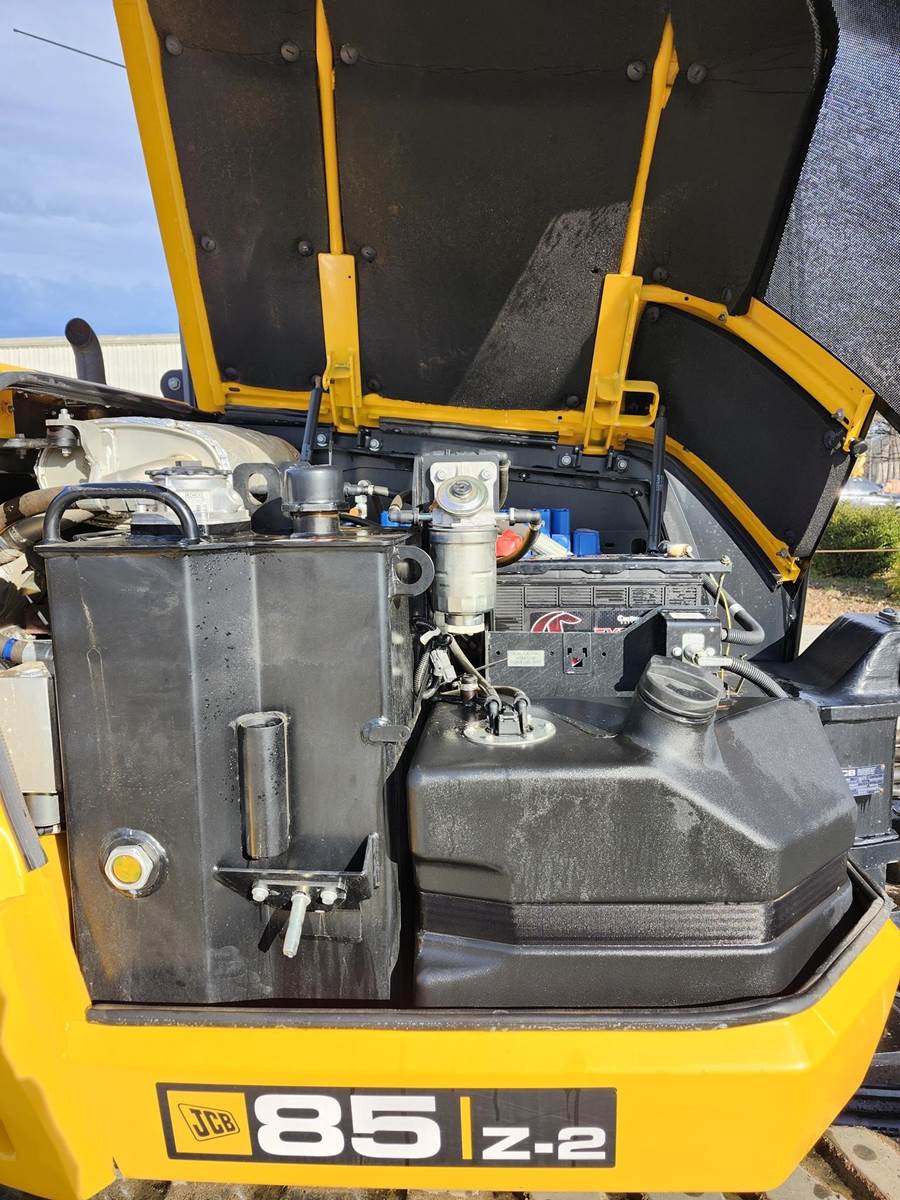 Air Conditioner, Swing Boom, 7 ft 1 in Stick, Auxiliary Hydraulic Plumbing, Backfill Blade, 18 in Rubber Tracks, 24 in Digging Bucket, Hydraulic Thumb. The JCB 85Z-2 compact excavator is designed to be robust, strong and durable without compromising performance. The cab is incredibly spacious, and its large door provides easy, safe access. To ensure all-day operator comfort, there’s fully adjustable suspension seating with an optional heated air suspension seat with independent adjustable positions. Switches are ergonomically laid out around a crystal-clear informative color LCD display with optional reversing camera. The standard electro proportional high flow line has 10 selectable flow rates for total attachment compatibility and seamless operation. A switch in the cab provides easy operation of single or double-acting auxiliary flow.