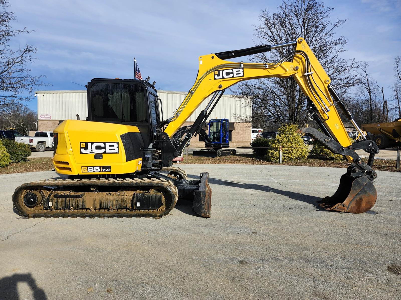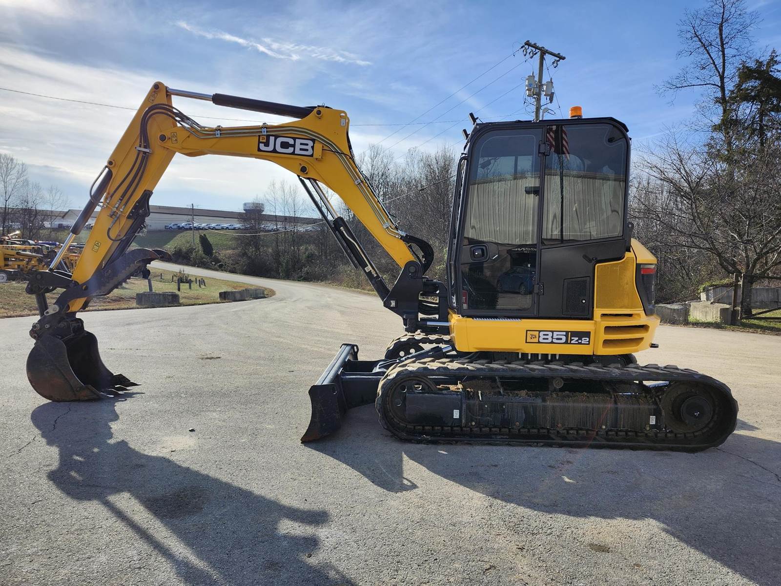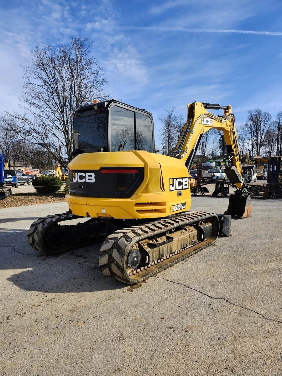 Air Conditioner, Swing Boom, 7 ft 1 in Stick, Auxiliary Hydraulic Plumbing, Backfill Blade, 18 in Rubber Tracks, 24 in Digging Bucket, Hydraulic Thumb. The JCB 85Z-2 compact excavator is designed to be robust, strong and durable without compromising performance. The cab is incredibly spacious, and its large door provides easy, safe access. To ensure all-day operator comfort, there’s fully adjustable suspension seating with an optional heated air suspension seat with independent adjustable positions. Switches are ergonomically laid out around a crystal-clear informative color LCD display with optional reversing camera. The standard electro proportional high flow line has 10 selectable flow rates for total attachment compatibility and seamless operation. A switch in the cab provides easy operation of single or double-acting auxiliary flow.