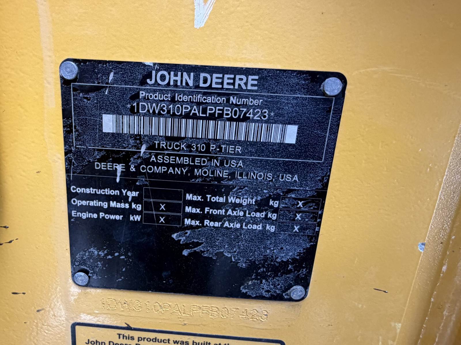 2023 John Deere 310 P Articulated Truck
