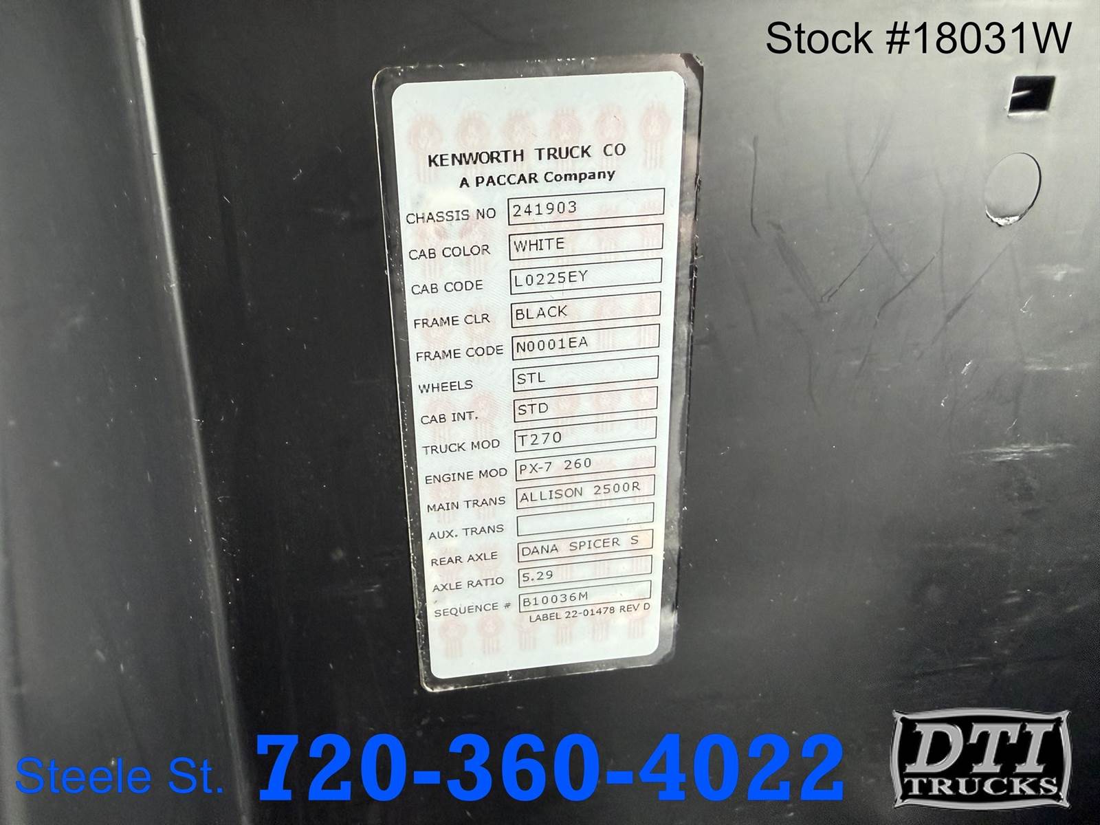 2023 Kenworth T270 26' Reefer Box Truck With ONLY 29k Miles, PX-7 260hp, Allison Automatic Transmission 6 Speed, 29,291 Miles 1,192 Engine Hours, 1,075 Reefer Hours, 26,000 GVW (No CDL Required) 10,000 Front, 16,000 Rear, Air Suspension, Air Brakes, 2195/75R 22.5 Tires, Exhaust Brake, 75 Gallon Aluminum Fuel Tank, block Heater, 26' long Hercules refrigerated insulated box 102" Wide, 99" Tall, Carrier Supra S10 Reefer Unti With Only 1,075 Engine Hours, 3,000lbs Capacity Maxon Max Grip Aluminum Lift Gate, 204" Cab To Axle, 276" Wheel Base, Heated Mirrors, Cruise Control, A/C, Tilt/Telescope Steering Wheel Adjustments, Power Windows/locks, Air Ride Divers Seat, 2 Person Passenger Bench Seat, This Box Truck is Available at DTI Trucks 8080 Steele St Denver, CO 80229. Call our Truck Sales Team at (for More Information. WE HAVE FINANCING OPTIONS AVAIALBLE! We Pick Up Out of State Customers from the Airport! Stock #18031W