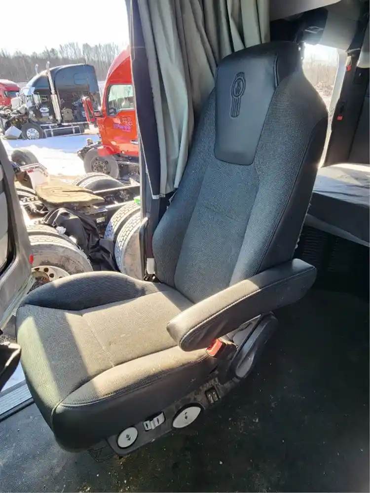 (Used) 2023 Kenworth T680, SEAT- heated seat button!! Side: Passenger Right Side, Color: Black with Grey, Material: Fabric, Type: Air Ride, Reference images for condition, For more information about this item, give us a call. We ship Worldwide! (CRG HEAVY TRUCK PARTS) 929 W PULASKI HWY ELKTON, MD 21921, Seat Make: Kenworth