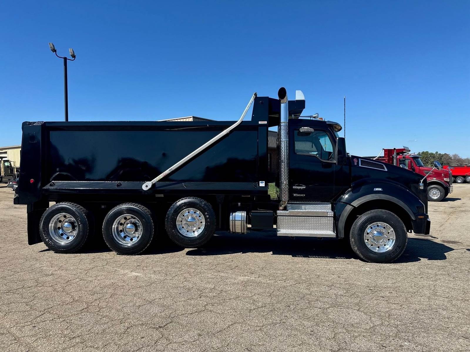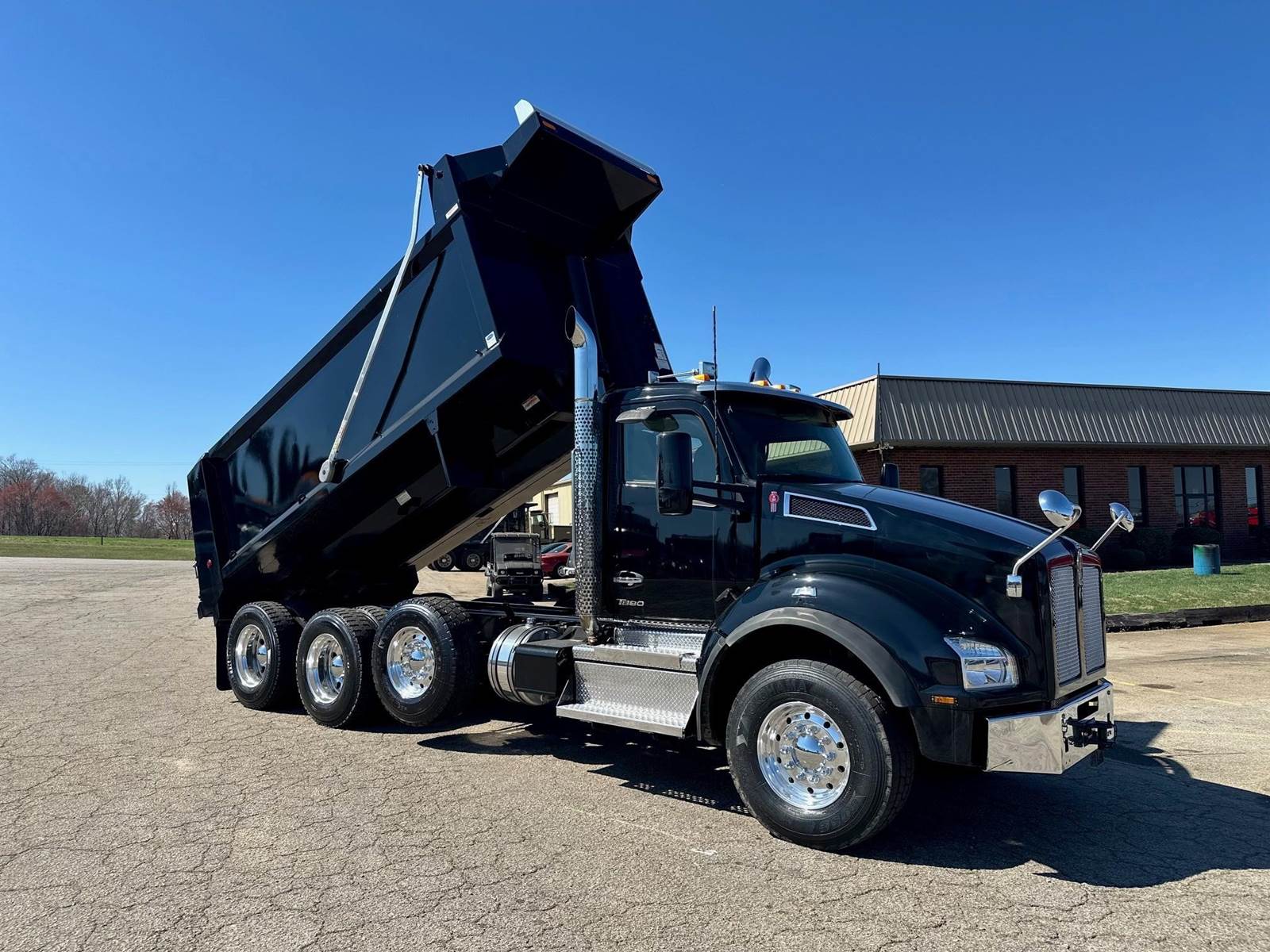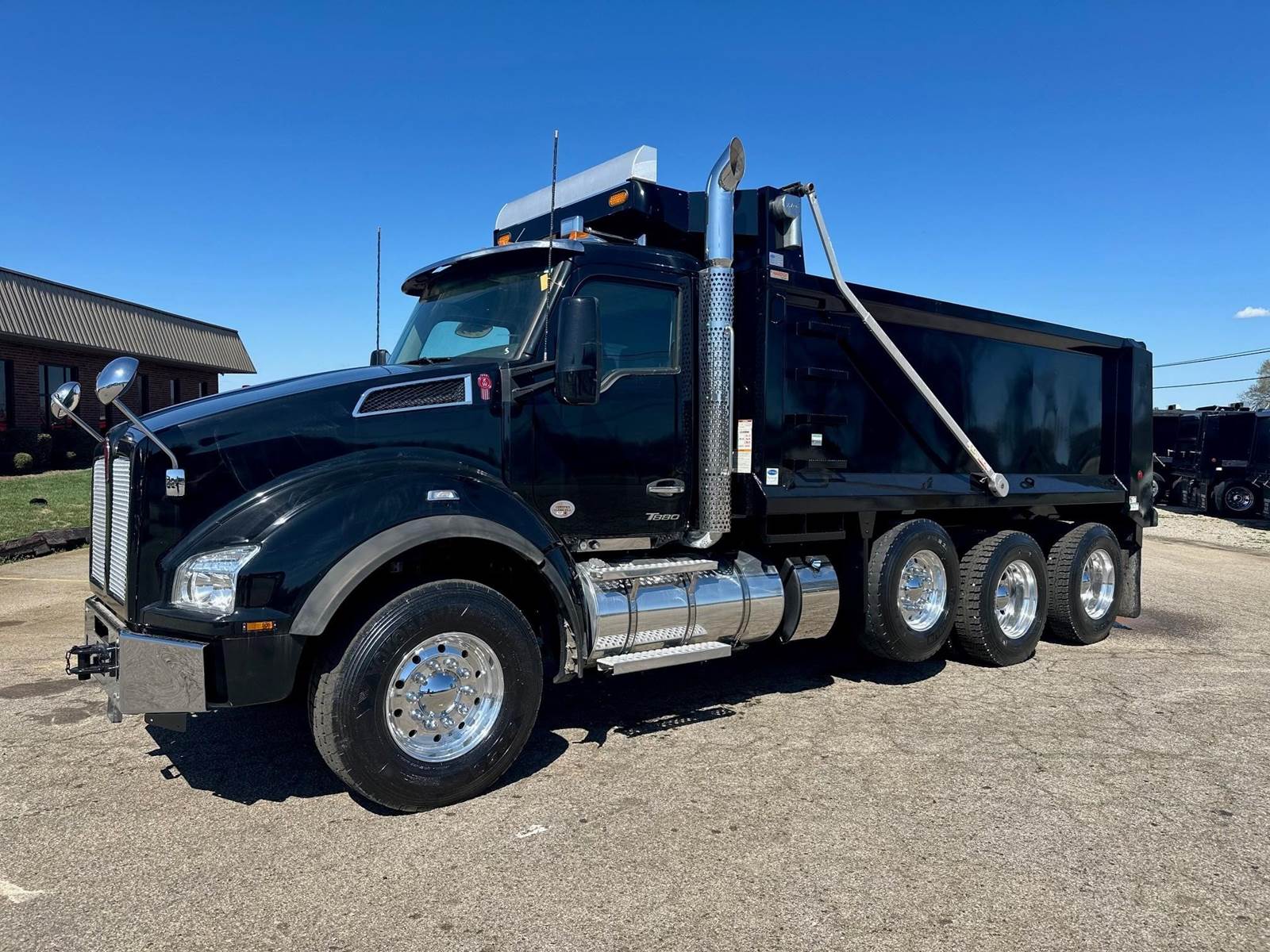 2023 Kenworth T880 --- Tri Axle, X15 Cummins 500 HP, Eaton-Fuller Manual 8LL, 18,740 Front Axle, 46,000 Rear Axle, 226" Wheelbase, 21' 2" Bridge, Hendrickson Walking Beam, 3 Stage Engine Brake, Air Brake, Full Locking Rears, 17.6' HARDOX STEEL Heritage Dump Body, 60" Sides, Air Gate, Electric Tarp, 1 Steerable Lift Axle, Aluminum Front Wheels, Aluminum Rear Wheels, Engine Heater Plug, Dual Stacks, Aluminum Fuel Tank, Daylite Doors, Air Ride Cab, Dual High Back Seats, High Level Interior, Chrome Gauge Package, Heated Mirrors, Cruise Control, Tilt & Telescopic Steering Wheel, AM/FM, Power Windows, P/L, P/S, AC.