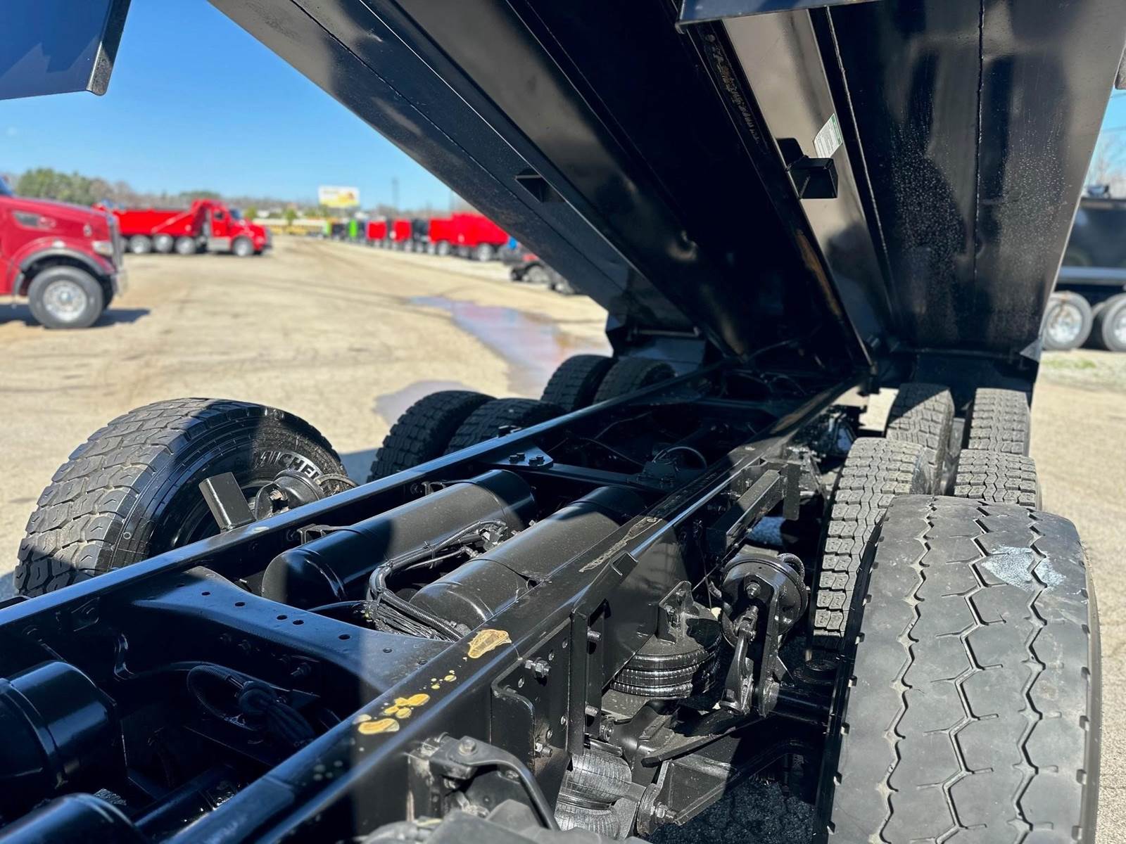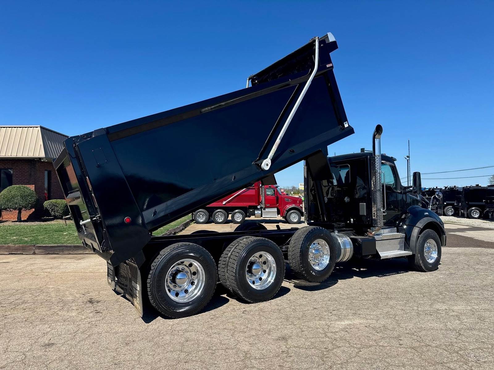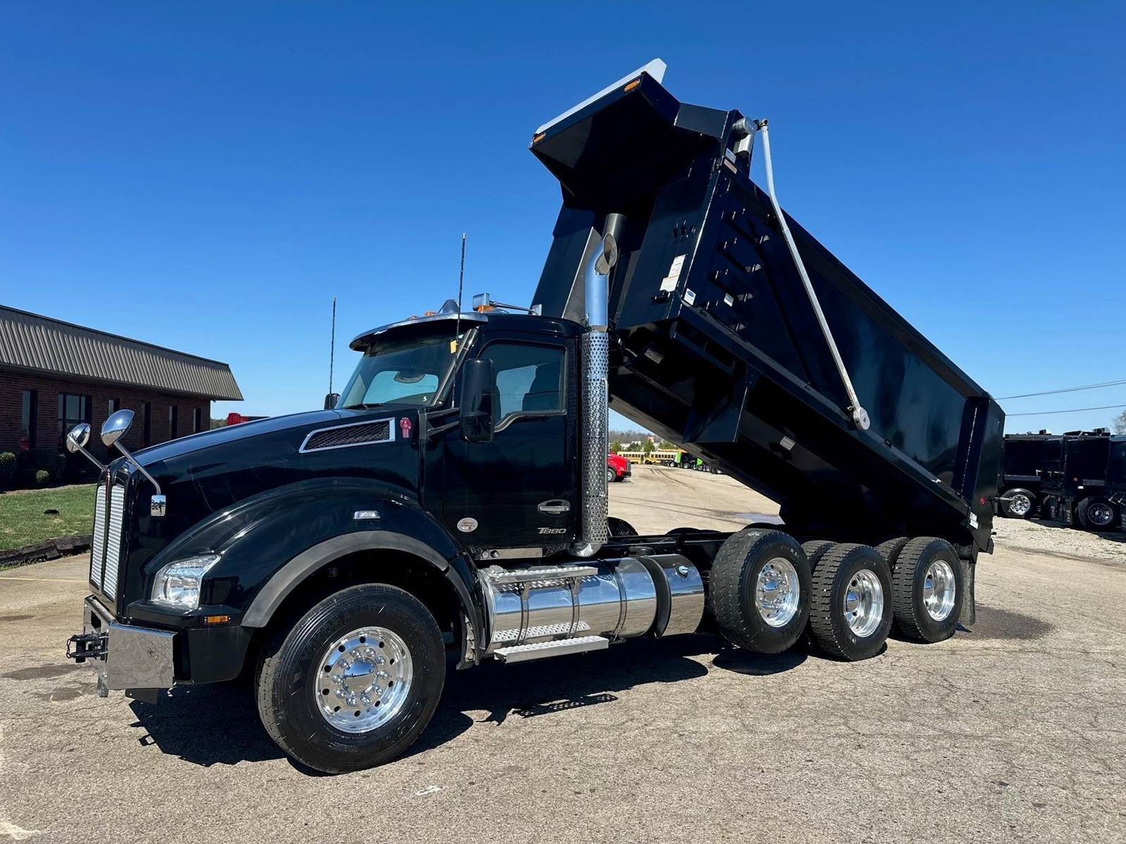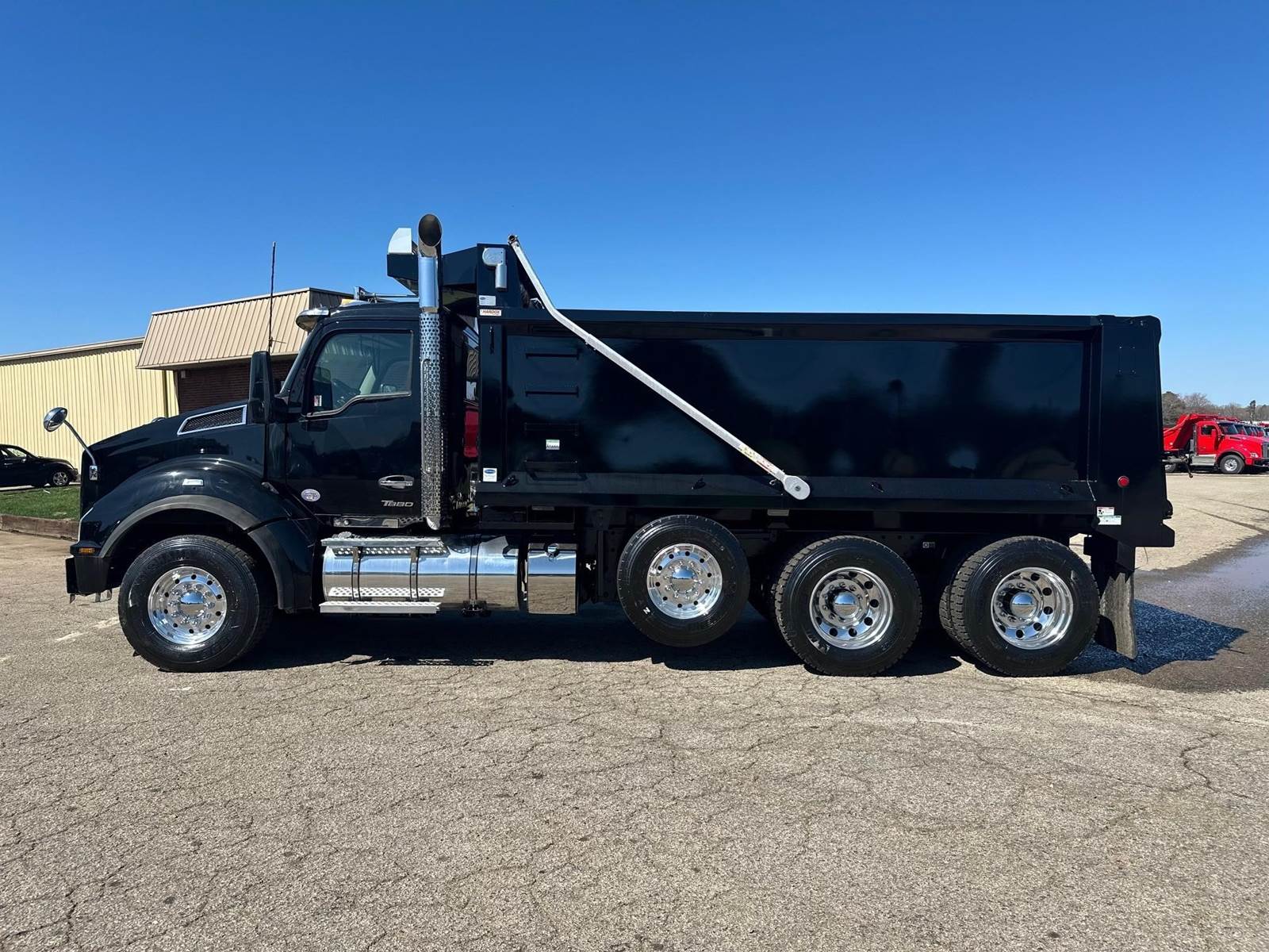 2023 Kenworth T880 --- Tri Axle, X15 Cummins 500 HP, Eaton-Fuller Manual 8LL, 18,740 Front Axle, 46,000 Rear Axle, 226" Wheelbase, 21' 2" Bridge, Hendrickson Walking Beam, 3 Stage Engine Brake, Air Brake, Full Locking Rears, 17.6' HARDOX STEEL Heritage Dump Body, 60" Sides, Air Gate, Electric Tarp, 1 Steerable Lift Axle, Aluminum Front Wheels, Aluminum Rear Wheels, Engine Heater Plug, Dual Stacks, Aluminum Fuel Tank, Daylite Doors, Air Ride Cab, Dual High Back Seats, High Level Interior, Chrome Gauge Package, Heated Mirrors, Cruise Control, Tilt & Telescopic Steering Wheel, AM/FM, Power Windows, P/L, P/S, AC.