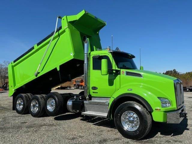 Tri Axle, X15 Cummins 565 HP, Allison Automatic 6 Speed, 4.30 Ratio, 18,740 Front Axle, 46,000 Rear Axle, 227" Wheelbase, 21' 1" Bridge, Chalmers, Double Frame, 3 Stage Engine Brake, Air Brake, Full Locking Rears, 17.6' HARDOX STEEL Heritage Dump Body, 60" Sides, Air Gate, Electric Tarp, 20,000 Lb. Steerable Lift Axle, Aluminum Front Wheels, Aluminum Rear Wheels, Engine Heater Plug, Dual Stacks, Aluminum Fuel Tank, Daylite Doors, Air Ride Cab, Dual High Back Seats, High Level Interior, Chrome Gauge Package, Heated Mirrors, Cruise Control, Tilt & Telescopic Steering Wheel, AM/FM CD, Power Windows, P/L, P/S, AC.